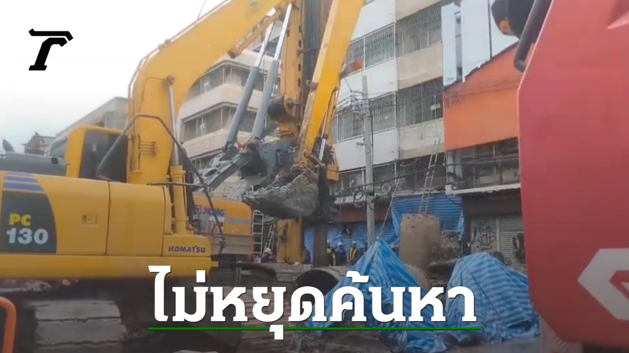 เจ้าหน้าที่การไฟฟ้านครหลวงตัดไฟ ถอนเสาไฟฟ้า เพิ่มประสิทธิภาพภารกิจค้นหาร่างคนงานตกหลุมเจาะเสาเข็มลึก 19 เมตร หลังผ่านไปแล้ว 48 ชั่วโมง