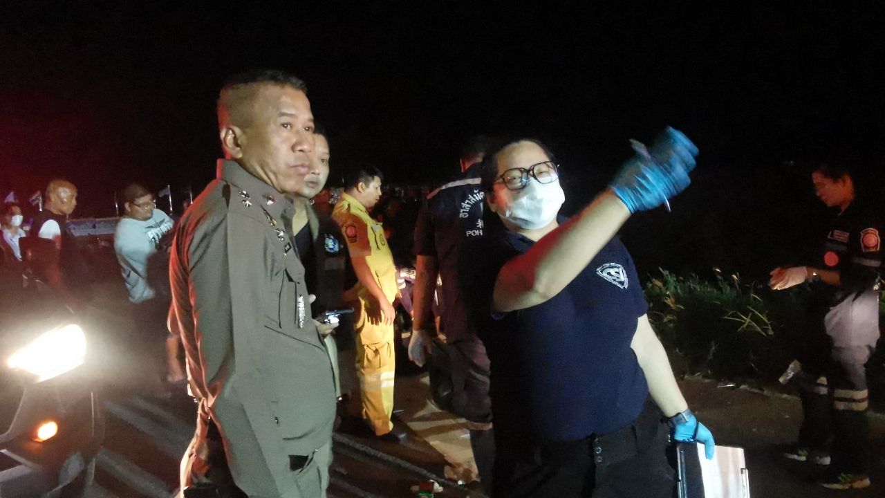 เมื่อเวลา 22.00 น. ของวันที่ 24 พฤษภาคม 2568 พ.ต.ท.วิทยา เซ็นบัว สารวัตรเวรสอบสวน สภ.ไทรน้อย รับแจ้งมีอุบัติเหตุรถจักรยานยนต์ถูกรถตู้ Alphard ชนแล้วหลบหนีมีผู้ได้รับบาดเจ็บ 2 ราย ที่ถนนเลียบคลองนาหมอน หมู่ 1 ตำบลคลองขวาง อำเภอไทรน้อย จังหวัดนนทบุรี จึงพร้อมด้วยแพทย์จากสถาบันนิติวิทยาศาสตร์และเจ้าหน้าที่มูลนิธิป่อเต็กตึ๊งเดินทางไปตรวจสอบที่เกิดเหตุ