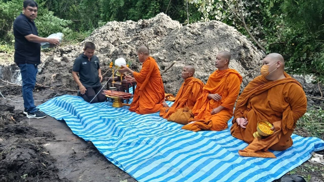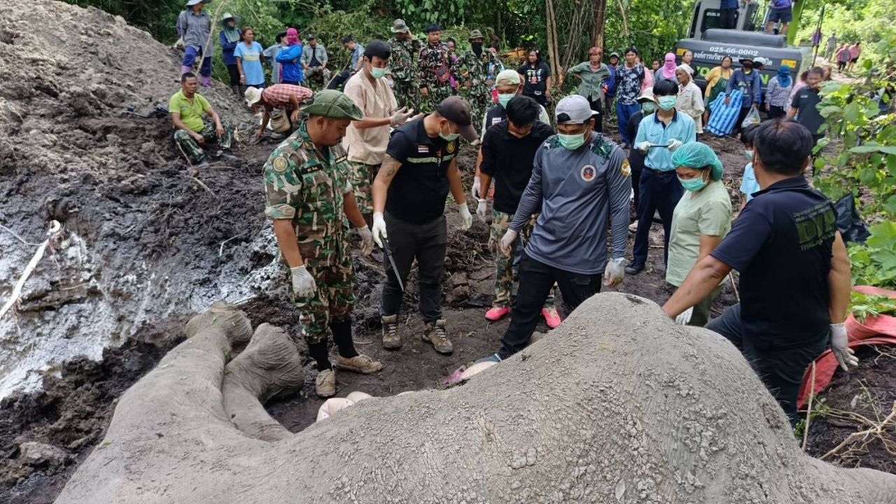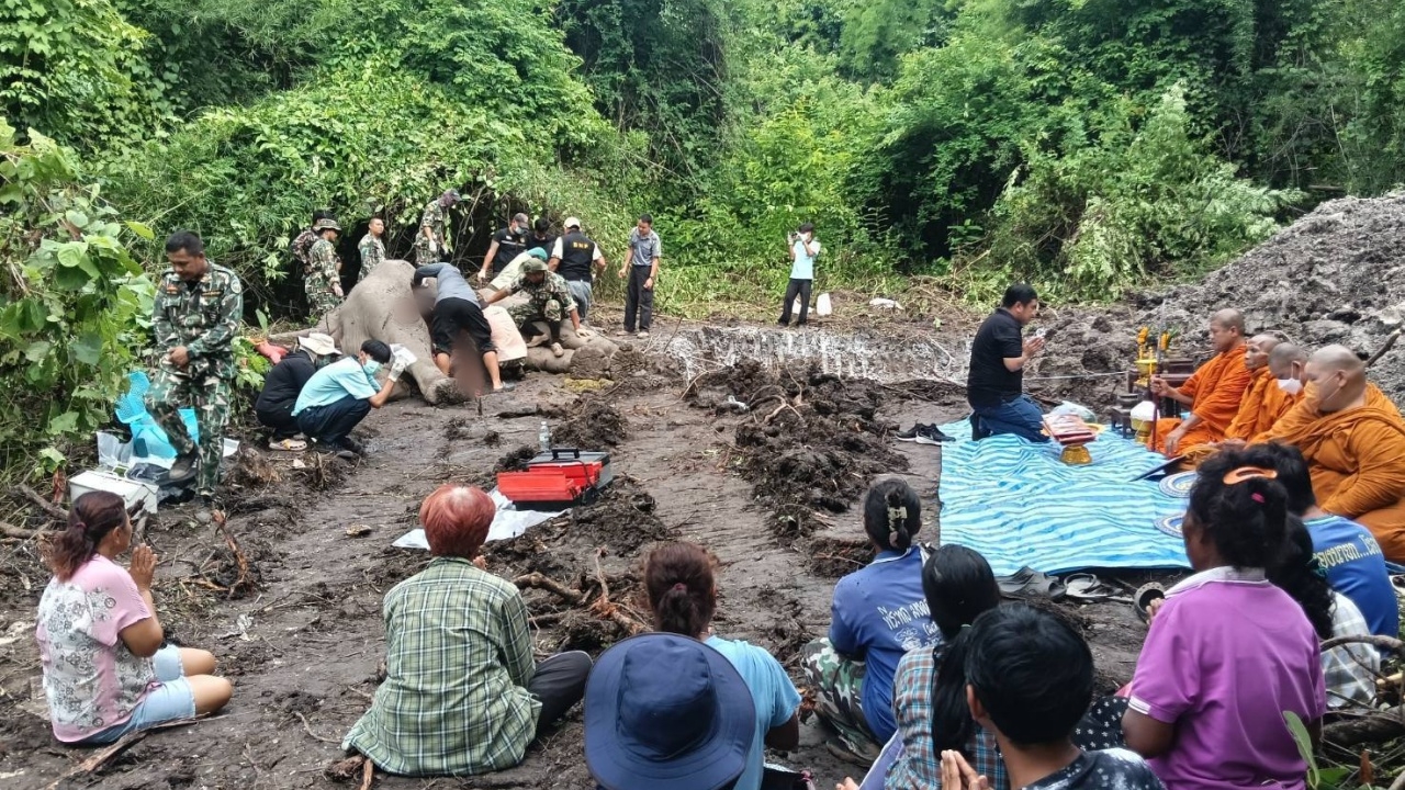 เจ้าหน้าที่จัดการฝัง "ช้างป่าสลักพระ" หลังพบสิ้นใจแถวไร่ของชาวบ้าน อ.ศรีสวัสดิ์ จ.กาญจนบุรี สแกนพบลูกตะกั่วฝังตามลำตัว - มีแผลบริเวณขมับด้านขวา
