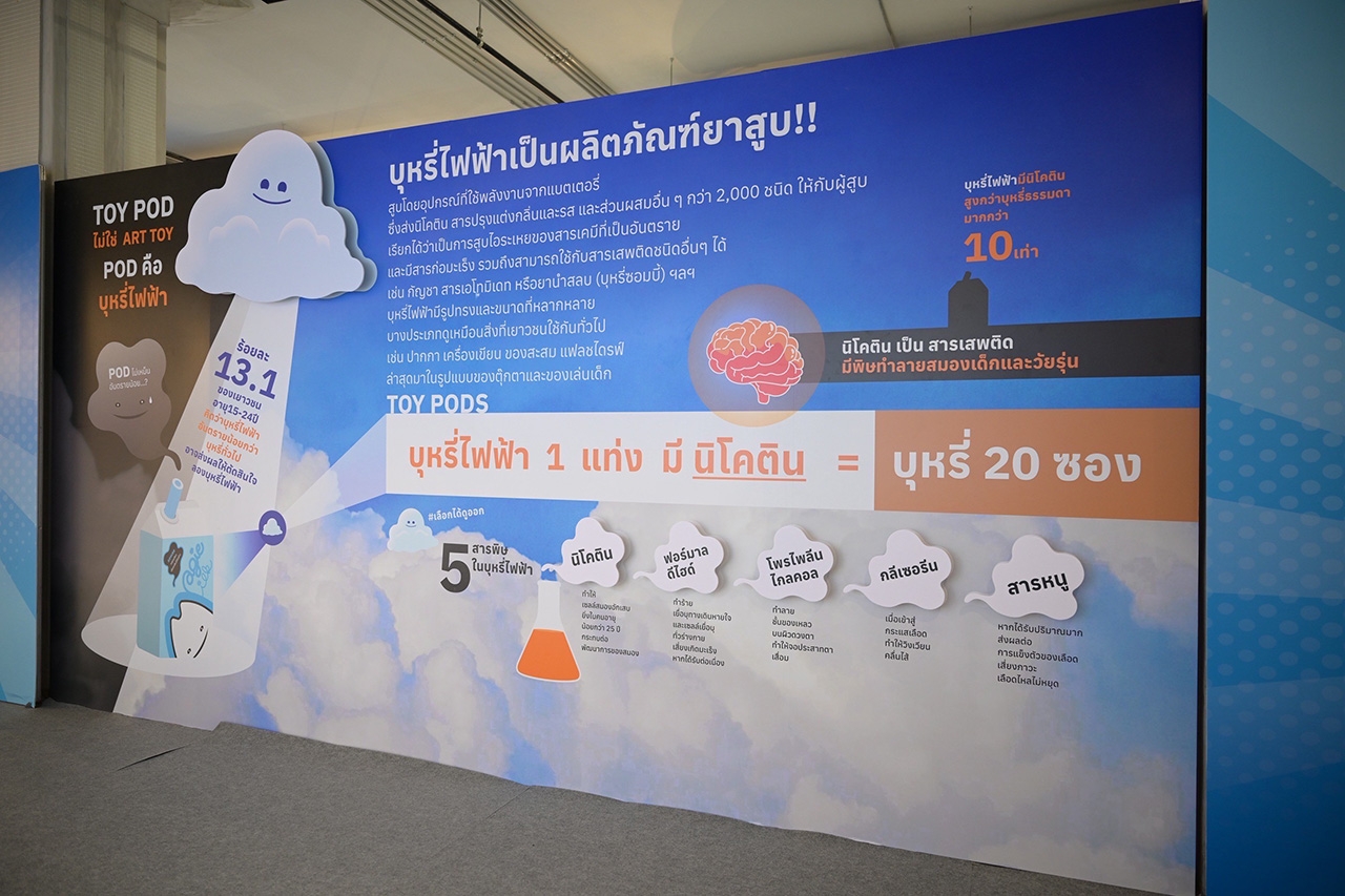 ดร.โสภี สงวนดีกุล ผู้อำนวยการอาวุโส ธนาคารแห่งประเทศไทย กล่าวว่า ศูนย์การเรียนรู้ ธปท. เปิดให้บริการประชาชนตั้งแต่ปี 2561 เพื่อส่งเสริมการเรียนรู้ในหลาย ๆ ด้าน ทั้งเศรษฐกิจ การเงิน การธนาคาร ประวัติศาสตร์ สังคม และสิ่งแวดล้อม ผ่านบริการห้องสมุด พิพิธภัณฑ์เงินตรา การจัดนิทรรศการและกิจกรรมอื่น ๆ ซึ่งครั้งนี้ได้ร่วมกับ สสส. จัดนิทรรศการเกี่ยวกับบุหรี่ไฟฟ้า เพื่อสร้างความตระหนักด้านสุขภาพ เพราะบุหรี่ไฟฟ้าเป็นเรื่องที่น่ากังวลและส่งผลเสียต่อสุขภาพอย่างมาก เป็นหนึ่งในปัญหาสังคมที่มีแนวโน้มการใช้เพิ่มขึ้นอย่างรวดเร็ว และแพร่ลงไปถึงเด็กนักเรียนระดับประถม โดยศูนย์การเรียนรู้ ธปท. เป็นที่รู้จักของกลุ่มคนที่หลากหลาย โดยเฉพาะเด็กนักเรียน เยาวชน ผู้ปกครอง และประชาชนทั่วไป จึงมั่นใจว่าจะมีส่วนสนับสนุนกิจกรรมให้บรรลุเป้าประสงค์สร้างความตระหนักรู้และความเข้าใจเกี่ยวกับโทษและอันตรายของบุหรี่ไฟฟ้าอย่างแท้จริง