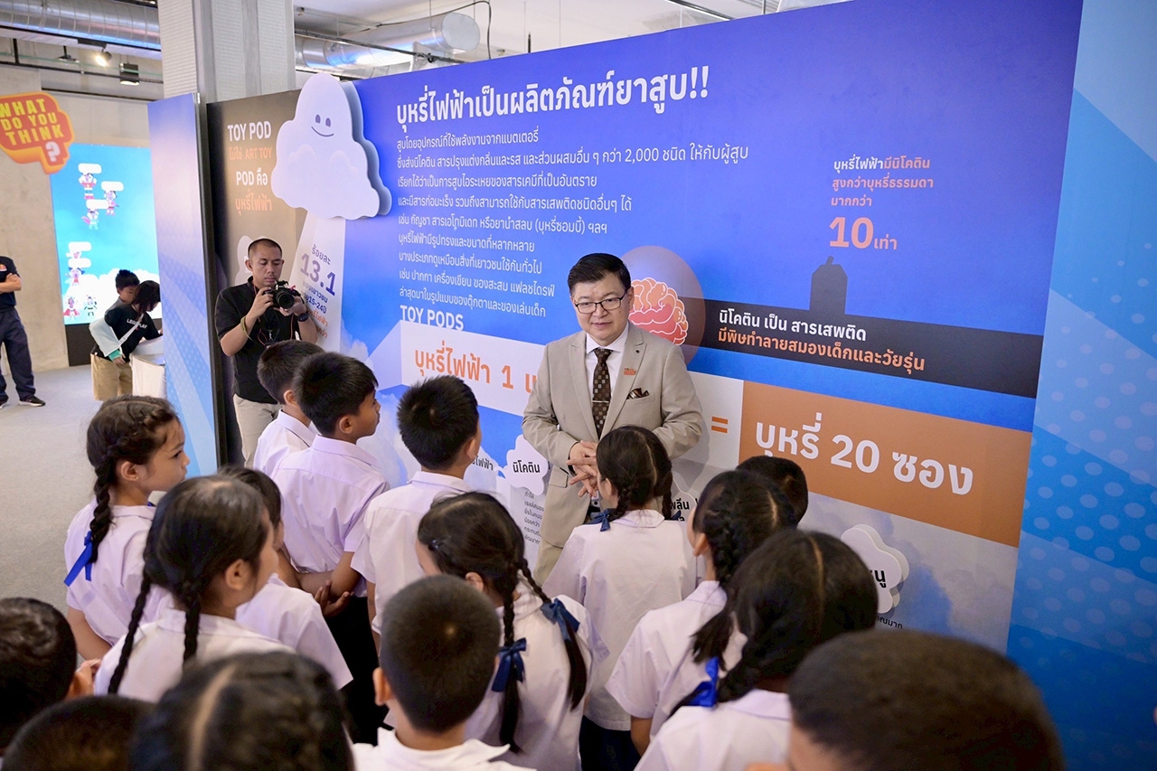 นพ.พงศ์เทพ กล่าวอีกว่า จากสถานการณ์การระบาดของบุหรี่ไฟฟ้า สสส. จึงทำงานเชิงรุกมุ่งให้เกิดสังคมที่ห่างไกลปลอดปัจจัยเสี่ยง และกระตุ้นให้เกิดการเปลี่ยนแปลงพฤติกรรม ลด ละ เลิกสูบบุหรี่ทุกชนิด เพื่อสุขภาพที่ดีของตัวคุณเองและคนรอบข้าง โดยสสส. ร่วมกับ ธปท. จัดนิทรรศการมีชีวิต FAKE OR FRESH? ออกแบบเนื้อหาให้เหมาะสมกับกลุ่มเป้าหมายคือ เยาวชน เป็นนิทรรศการอินเตอร์แอคทีฟ และกิจกรรมที่ชวนตั้งคำถามกับสิ่งที่เห็นและเลือกให้ถูก แบ่งออกเป็น 2 โซน คือ 1.โซน Tunnel Exhibition : Magic Milk เปิดประสบการณ์สำรวจบุหรี่ไฟฟ้า มี 3 ห้อง ห้องแรกมีแอปเปิลสีสดใสเป็นตัวแทน แสดงถึงกลิ่นหอมเย้ายวนใจ ห้องสองแสดงเบื้องหลังความสวยงามที่หลอกล่อของแอปเปิล หรืออุตสาหกรรมยาสูบที่ใส่สารพิษอันตราย และห้องสามเป็นห้องมืดสนิท มีการตั้งคำถามชวนติดตามและแสดงวิดีโอเพื่อสัมผัสแสง สี เสียงที่จะกระตุ้นความคิด 2.โซน FACT บุหรี่ไฟฟ้า นำสรุปความจริงมีเพียงหนึ่งเดียวของบุหรี่ไฟฟ้าที่มีอันตรายซ่อนอยู่ภายใต้หน้าตาแสนน่ารักหรือ Toy Pod ชวนให้รู้ทันเทรนด์ และแคมเปญการสื่อสารหลอกล่อ ราคาสุขภาพที่ต้องจ่ายและเงินออม ผู้สนใจเข้าชมได้ฟรี ทุกอังคาร-วันอาทิตย์ ตั้งแต่วันนี้-22 มิ.ย. 2568 ที่ศูนย์การเรียนรู้ ธปท.