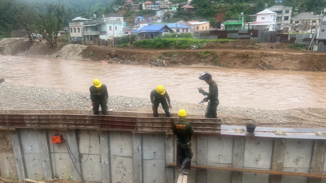 กรมทหารช่างกองทัพบก ร่วมกับทางฝ่ายปกครอง นายอำเภอและชาวแม่สาย ร่วมกันพัฒนาพื้นที่เพื่อป้องกันน้ำและดินโคลน