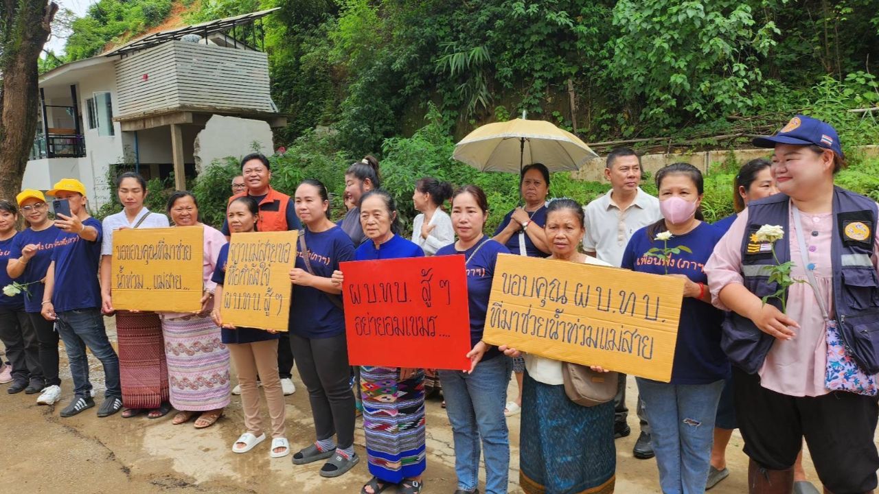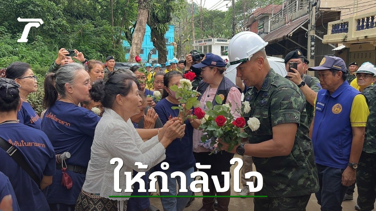 ผบ.ทบ. ลงพื้นที่น้ำท่วมแม่สาย เช็กเขื่อนกั้นน้ำ ป้องน้ำท่วมบ้านเรือน ขณะที่ชาวบ้านชูป้าย "สู้ๆ อย่ายอมเขมร"