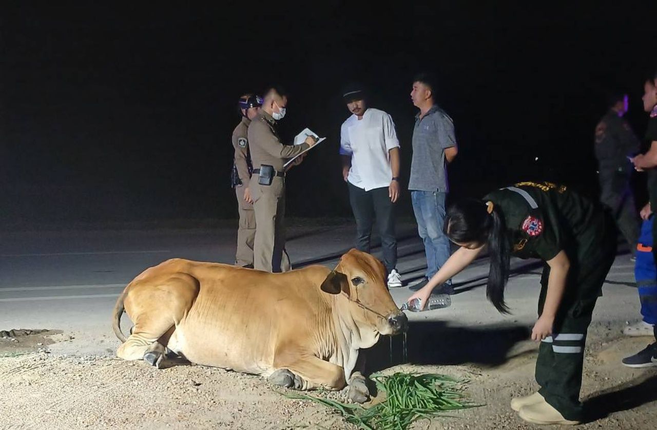 สำหรับวัวนั้น ไม่สามารถระบุเจ้าของวัวได้ ทางคุณเอ็มจึงจำเป็นต้องนำวัวตัวดังกล่าวกลับไปด้วย เนื่องจากรถที่เสียหายนั้นถ้าซ่อมก็ประมาณหลายหมื่นบาท ในที่เกิดเหตุนั้น ทางวัวตัวเมียตัวดังกล่าวนั้นมีอาการร้องดิ้นทุรนทุรายน้ำตาไหลซึม ทางเจ้าหน้าที่กู้ภัยได้แต่เพียงเอาน้ำและหญ้ามาให้วัวตัวนี้ดื่มกิน ซึ่งเป็นที่น่าสังเวชใจยิ่งนัก ต่อมาวัวได้เสียชีวิตลง