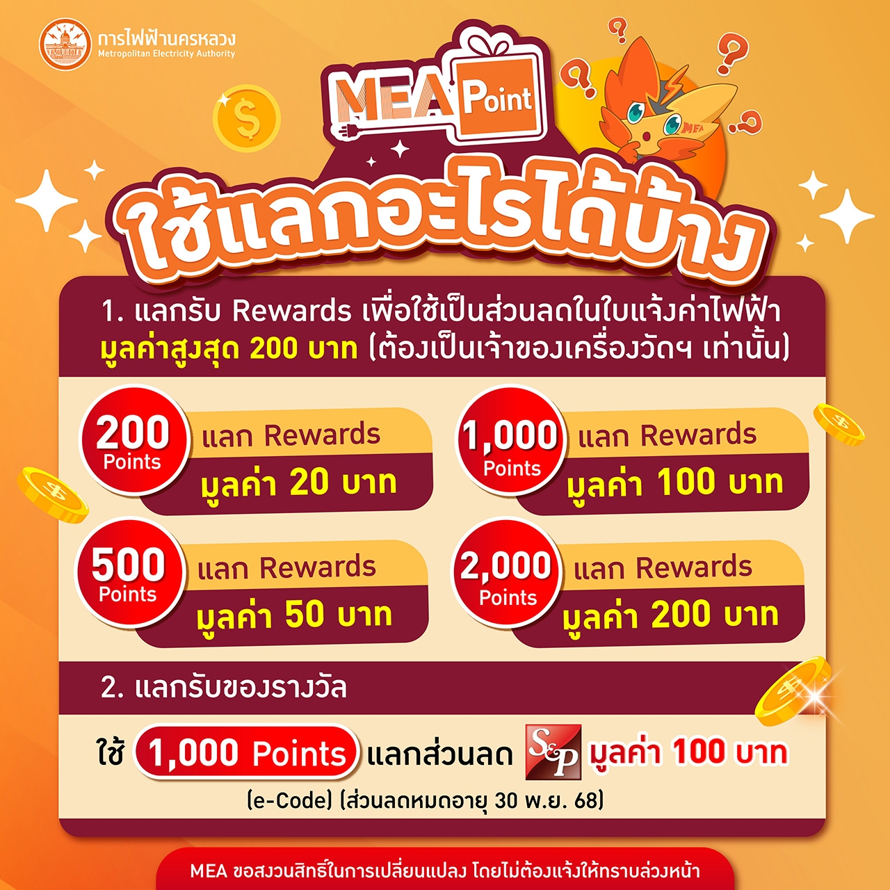 MEA Point ใช้แลกอะไรได้บ้าง