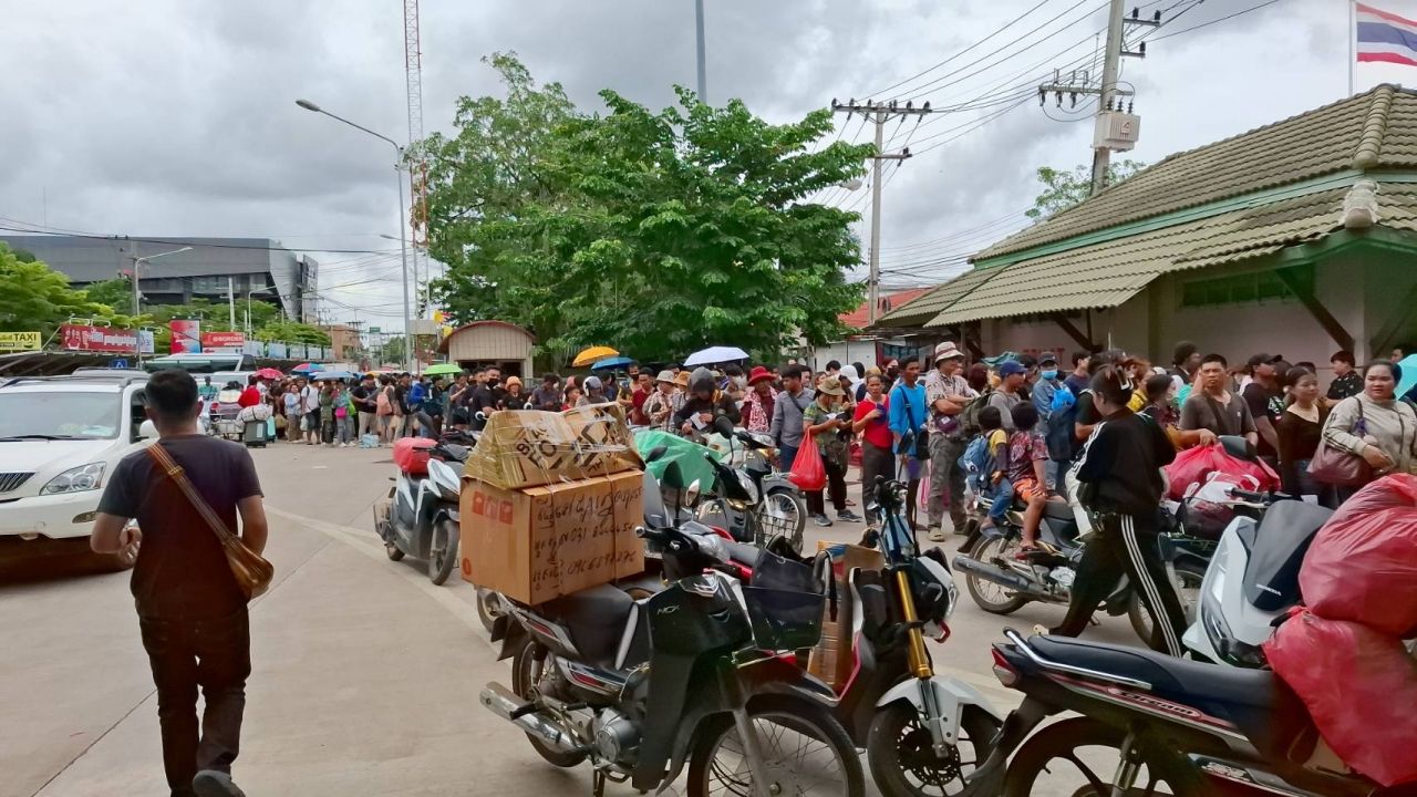 และจากการตรวจสอบพบว่ามีชาวกัมพูชาที่เข้ามาค้าขายในตลาดโรงเกลือ ตลาดการค้าชายแดน อ.อรัญประเทศ จ.สระแก้ว จำนวนกว่า 10,000 คน ต่างแห่ปิดร้านค้าในตลาดโรงเกลือ แล้วเก็บเสื้อผ้ารีบเดินทางกลับประเทศอย่างเร่งด่วน ประกอบกับมีแรงงานกัมพูชาที่ทำงานในประเทศไทย แห่เดินทางกลับมาสมทบทำให้บริเวณหน้าด่านพรมแดนคลองลึก เต็มไปด้วยประชาชนชาวกัมพูชาที่ต้องการเดินทางกลับประเทศ คาดจะมีคนกัมพูชาเดินทางกลับประเทศทางด่านพรมแดนคลองลึกฯ ในวันนี้ไม่ต่ำกว่า 10,000 คน ซึ่งชาวกัมพูชาเหล่านี้เผยว่าสาเหตุที่แตกตื่นรีบอพยพเดินทางกลับประเทศ เนื่องจากเมื่อวันที่ 12 มิ.ย. 68 รมว.มหาดไทย ของกัมพูชา ได้ออกประกาศเรียกคนกัมพูชาที่อยู่ในประเทศไทยกลับประเทศ ซึ่งทำให้คนกัมพูชากลัวว่าด่านพรมแดนคลองลึกฯ อาจจะถูกสั่งปิด หรืออาจมีการสู้รบกันจึงทำให้ชาวกัมพูชาเหล่านี้แห่เดินทางกลับประเทศ เพื่อความปลอดภัย