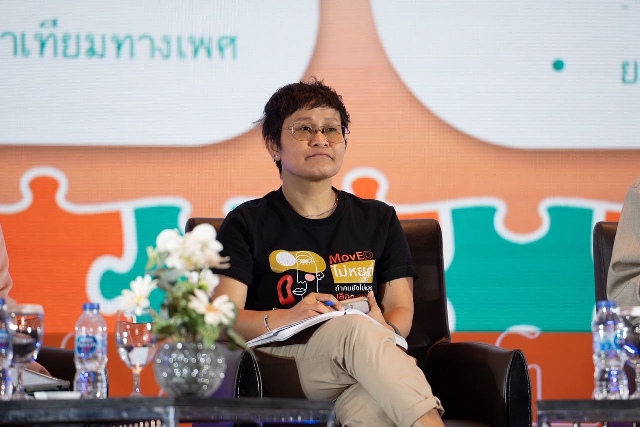 คุณจารุณี ศิริพันธุ์ จากมูลนิธิเพื่อสิทธิความหลากหลาย (FAIR) และเครือข่ายประชาชนขจัดการเลือกปฏิบัติ (มูฟดิ)