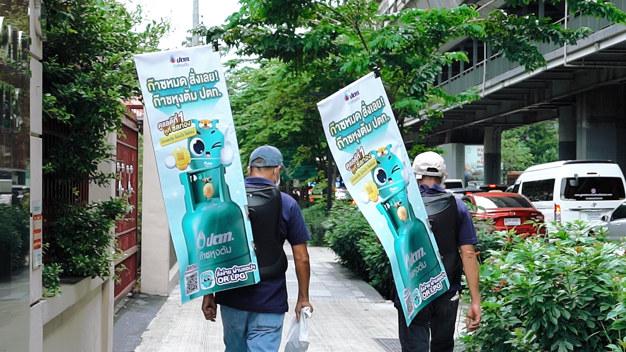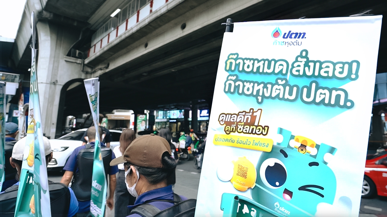 ก๊าซหุงต้ม ปตท. ตอกย้ำจุดยืนในการเป็นแบรนด์พลังงานที่ไม่เพียงให้ความสำคัญกับคุณภาพสินค้าและความปลอดภัยในทุกครัวเรือนเท่านั้น แต่ยังใส่ใจต่อสังคม ผ่านการเข้าร่วมสนับสนุนโครงการ “หนึ่ง-ก้าว” ป้ายโฆษณาเคลื่อนที่ จากพละกำลังของคนไร้บ้านผู้สูงอายุ และผู้คนที่ลำบากต้องการทำงานเพื่อให้มีชีวิตที่ดีขึ้น ซึ่งมุ่งเน้นการให้โอกาสแก่คนไร้บ้านสูงวัยได้กลับมาทำงานอีกครั้ง