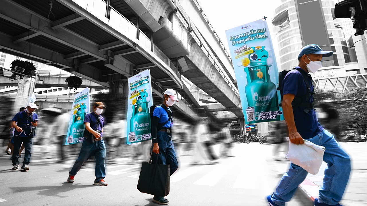 หลายคนอาจเคยเดินผ่านป้ายโฆษณาแคมเปญศิลปะจาก “หนึ่ง-ก้าว” โครงการที่เปิดโอกาสให้คนไร้บ้านสูงวัยกลับมาใช้ชีวิต ด้วยการมีงาน มีรายได้ มีที่พัก หากแต่ครั้งนี้ไม่ใช่แค่ศิลปินหรืออาร์ติสต์ที่มาร่วมแจมบนป้ายโฆษณา เพราะ “น้องถังถัง” มาสคอตประจำแบรนด์ก๊าซหุงต้ม ปตท. ที่หลายคนคุ้นเคย เดินทางไปพร้อมคุณลุงสูงวัยเพื่อประชาสัมพันธ์ก๊าซหุงต้ม ปตท. ด้วยแนวคิด “ดูแลดีที่ 1 ดูที่ซีลทอง” ชวนผู้บริโภคฉุกคิดและหันมาสังเกต “ซีลทอง QR” สัญลักษณ์ที่บ่งชี้ว่าถังก๊าซใบนั้นเป็นก๊าซหุงต้ม ปตท. “ของแท้” “ของจริง” จากโออาร์ที่มีครบ 3 จุดเด่นจำง่าย - ปลอดภัย ร้อนไว ไฟแรง