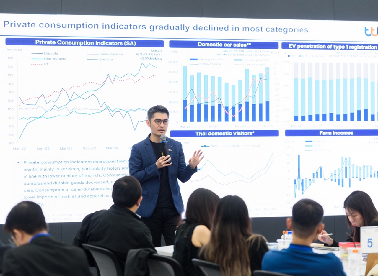 นายนริศ สถาผลเดชา ประธานกลุ่ม บริหารจัดการข้อมูลและวิเคราะห์ข้อมูล ทีเอ็มบีธนชาต กล่าวว่า อุตสาหกรรมอาหารและเครื่องดื่ม รวมถึงสินค้าอุปโภคบริโภค ถือเป็นหนึ่งในภาคธุรกิจที่มีบทบาทสำคัญต่อเศรษฐกิจไทย มีสัดส่วนมากกว่า 10% ของ GDP อีกทั้งยังมีศักยภาพในการส่งออกสูง โดยเฉพาะกลุ่มอาหารแปรรูปและเครื่องดื่มเพื่อสุขภาพ สำหรับปี 2025 ภาพรวมอุตสาหกรรมอาหาร เครื่องดื่ม และสินค้าอุปโภคบริโภคยังคงเติบโตต่อเนื่อง โดยเฉพาะกลุ่มเครื่องดื่มไม่มีแอลกอฮอล์ที่ได้รับความนิยมสูงขึ้นจากกระแสการใส่ใจสุขภาพของผู้บริโภค ซึ่งหันมาบริโภคสินค้าประเภท Plant-based และเครื่องดื่มที่มีวิตามินมากขึ้น