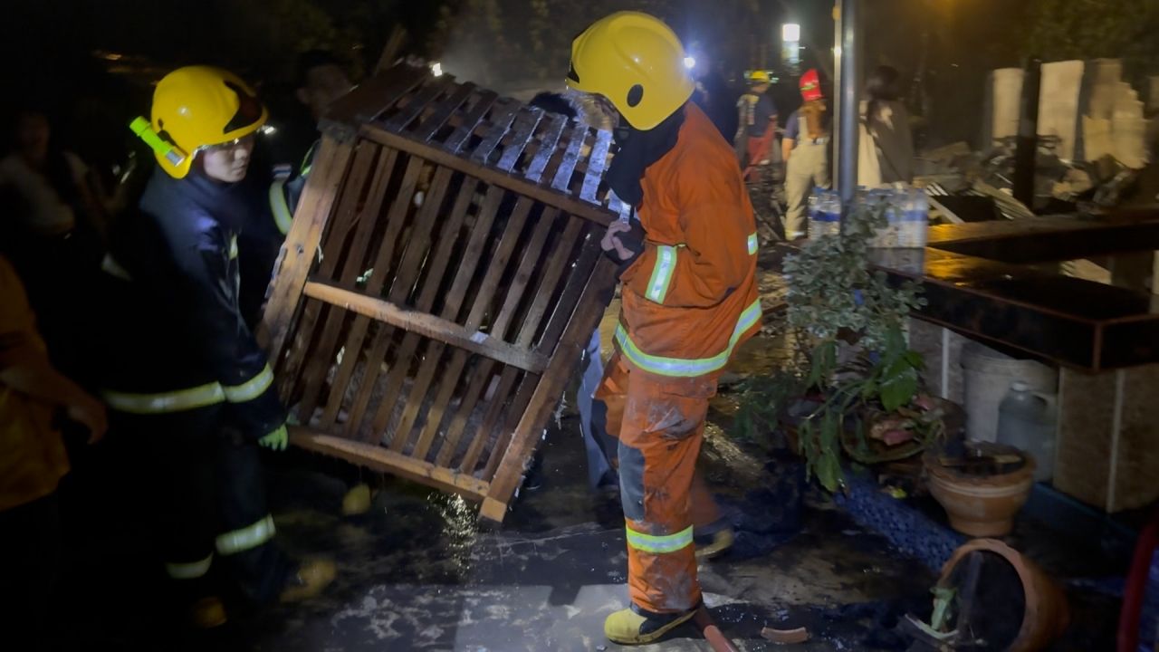 ขณะที่ชาวบ้านบางส่วนก็ใช้กระป๋องน้ำช่วยกันตักน้ำดับไฟที่ไหม้บ้านอย่างมีความหวัง เจ้าหน้าที่ใช้เวลาในการควบคุมเพลิงกว่า 1 ชั่วโมง จึงควบคุมเพลิงไว้ได้แต่เพลิงก็ไหม้บ้านวอดเสียหายไป 5 หลัง นอกจากนี้ยังมีรถยนต์ รถจักรยานยนต์ที่จอดอยู่บริเวณบ้านเสียหายอีกกว่า 10 คัน