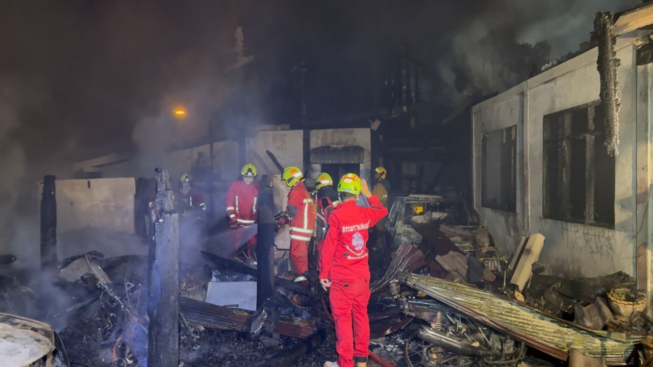 ไฟไหม้บ้านวอด 5 หลัง รถยนต์-รถจักรยานยนต์ ถูกเผาเสียหายกว่า 10 คัน ความเสียหายเกือบ 10 ล้าน สลดสุนัขเสียชีวิต 1 ตัว
