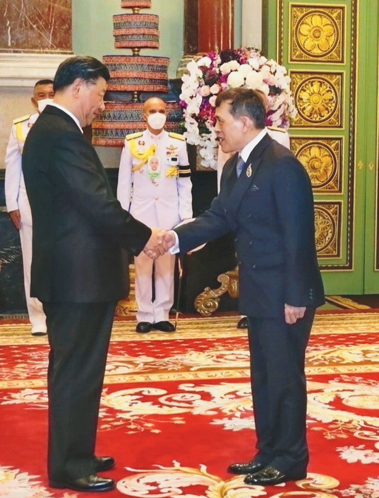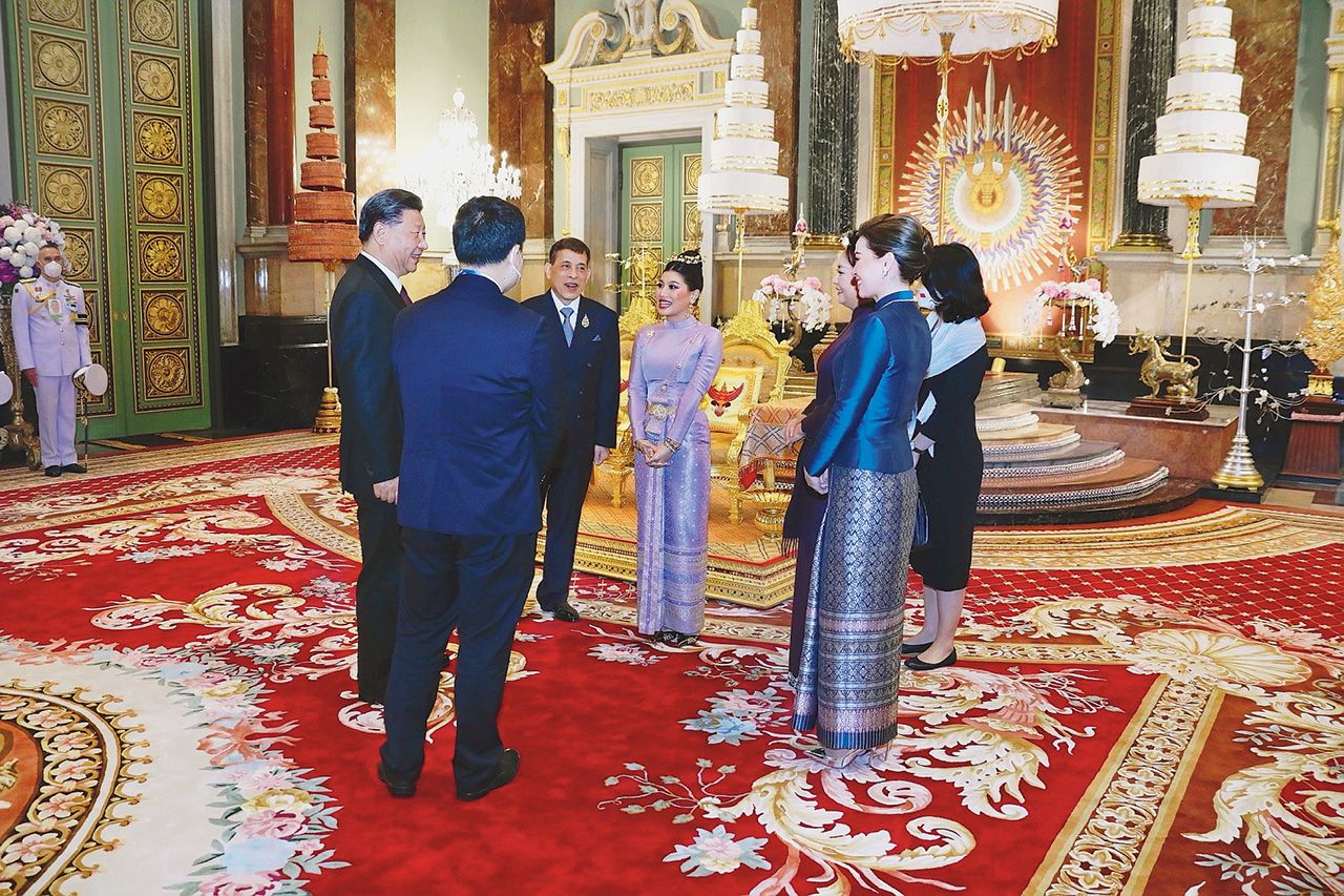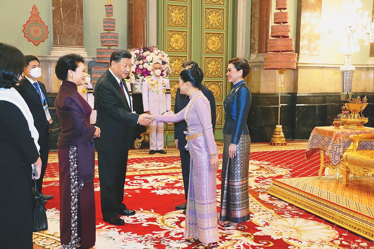 โอกาสนี้ “ประธานาธิบดีสี จิ้นผิง” ได้เข้าเฝ้าฯ “พระบาทสมเด็จพระเจ้าอยู่หัว รัชกาลที่ 10” และ “สมเด็จพระนางเจ้าฯ พระบรมราชินี” ณ พระที่นั่งจักรีมหาปราสาท ในพระบรมมหาราชวัง ซึ่งถือเป็นการพบปะกันครั้งแรก โดย “พระบาทสมเด็จพระเจ้าอยู่หัว” ตรัสว่า พระองค์เคยเสด็จฯ เยือนจีนหลายครั้ง ได้สัมผัสกับขุนเขาสายน้ำที่สวยงาม ความมีชีวิตชีวา และมนต์เสน่ห์ ตลอดจนการพัฒนาที่ก้าวหน้าของประเทศจีนด้วยตนเอง ด้าน “ประธานาธิบดีสี จิ้นผิง” กล่าวว่า จีนยินดีที่จะร่วมกับไทยเชิดชูไมตรีจิตอันพิเศษ “จีนไทยใช่อื่นไกล...พี่น้องกัน” อย่างต่อเนื่อง ร่วมกันสร้างประชาคมจีน-ไทยที่มีอนาคตร่วมกัน และเขียนบทใหม่แห่งความสัมพันธ์ระหว่างสองประเทศ ด้าน “พระบาทสมเด็จพระเจ้าอยู่หัว” ทรงมีรับสั่งตอบว่า ไทยยินดีกระชับความสัมพันธ์ฉันมิตรกับจีนให้แน่นแฟ้นมากยิ่งขึ้น