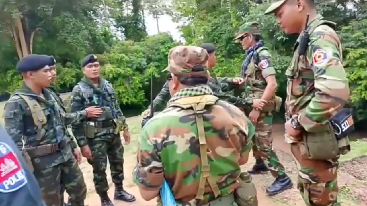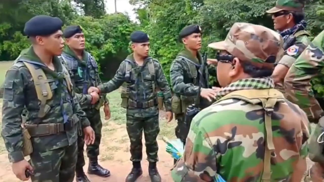 สุรินทร์-คืบหน้าคลิปทหารเขมร ชี้หน้าทหารไทย กระฉ่อนโซเชียล ที่แท้เป็นคลิปเมื่อวันที่ 27 มิ.ย. เหตุคณะครูไทยเข้าเยี่ยมชมปราสาทตาเมือนธม เหลือเวลาอีก 5 นาที ก่อนทหารเขมรออกมาโวยว่าหมดเวลา จนเกิดการโต้เถียงกระทบกระทั่งโดยวาจา