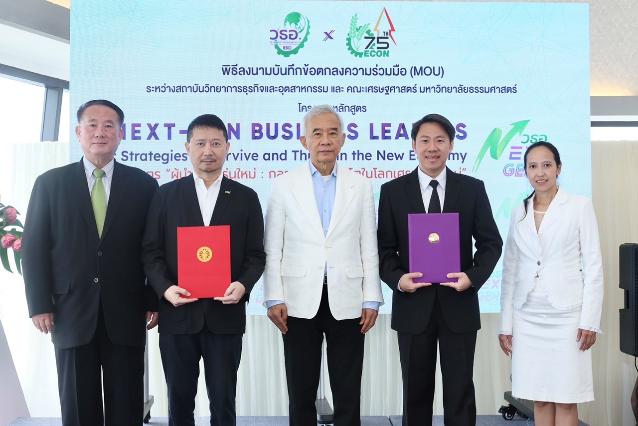 มูลนิธิเพื่อการพัฒนาการประกอบการธุรกิจและอุตสาหกรรม (วธอ.) ร่วมกับคณะเศรษฐศาสตร์ มหาวิทยาลัยธรรมศาสตร์ เปิดตัวโครงการหลักสูตร “ผู้นำธุรกิจรุ่นใหม่ : กลยุทธ์รอดและโตในโลกเศรษฐกิจใหม่” หรือ วธอ. Next Gen 1 เพื่อพัฒนาภาวะผู้นำของผู้บริหารยุคใหม่ให้พร้อมรับมือกับความเปลี่ยนแปลงของเศรษฐกิจโลก พร้อมเสริมองค์ความรู้ด้านเศรษฐศาสตร์ การตลาด นวัตกรรม และการออกแบบนโยบาย เพื่อการเติบโตอย่างยั่งยืนในระยะยาว