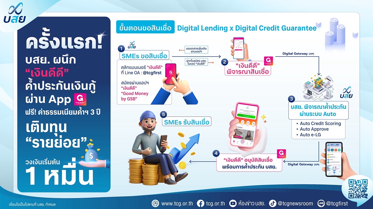 นายสิทธิกร ดิเรกสุนทร กรรมการและผู้จัดการทั่วไป บรรษัทประกันสินเชื่ออุตสาหกรรมขนาดย่อม (บสย.) กล่าวว่า บสย. ผนึกความร่วมมือ “เงินดีดี” บริษัทลูกของธนาคารออมสิน ค้ำประกันสินเชื่อ ผ่านแอปพลิเคชัน Good Money รองรับผู้ใช้บริการยุคดิจิทัลผ่านโทรศัพท์มือถือ แก้ปัญหา Pain points ให้ “กลุ่มเปราะบาง” สามารถเข้าถึงแหล่งทุนได้สะดวก รวดเร็ว ตั้งแต่ยื่นขอสินเชื่อ ตรวจสอบข้อมูล ไปจนถึงการอนุมัติสินเชื่อ บนแอปพลิเคชัน Good Money เพื่อสามารถติดตามสถานะการอนุมัติสินเชื่อ และปิดท้ายด้วยการค้ำประกันสินเชื่อดิจิทัลจาก บสย. ซึ่งเข้ามาเป็นกลไกสำคัญในการสร้างความมั่นใจให้ทั้งผู้กู้ และผู้ให้บริการทางการเงินกล้าปล่อยสินเชื่อมากขึ้น