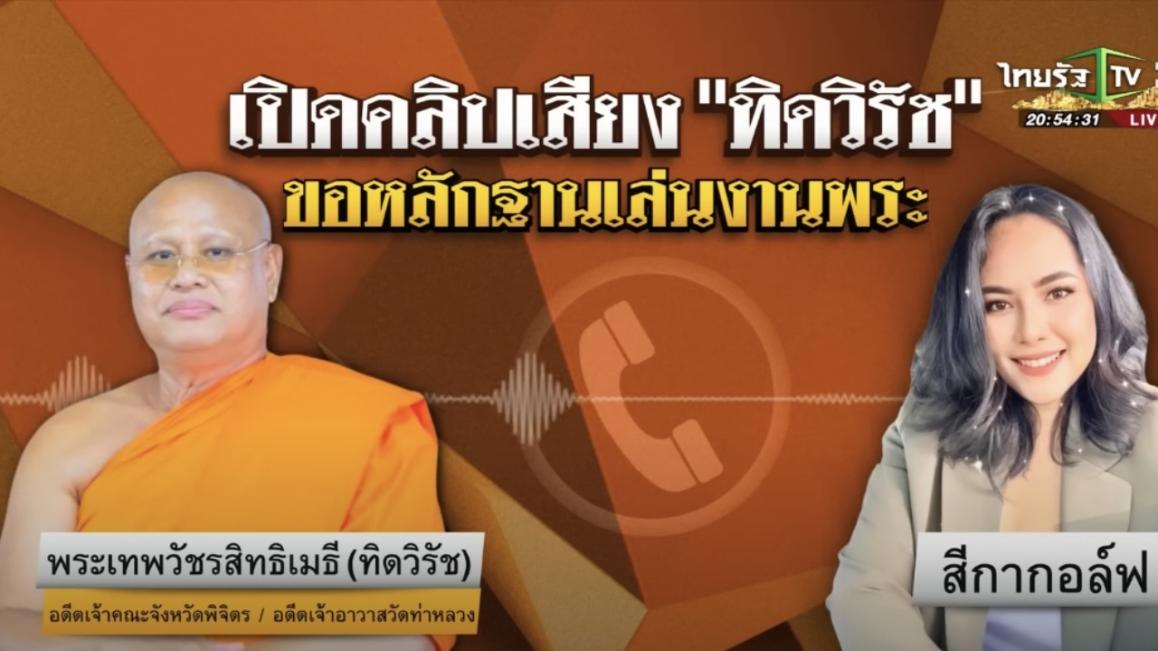 เปิดคลิปเสียง "ทิดวิรัช" อดีตเจ้าคณะจังหวัดพิจิตร โทรคุยกับ "สีกากอล์ฟ" ขอหลักฐานเล่นงานพระ อ้างเป็นตัวตั้งตัวตีตนเอง