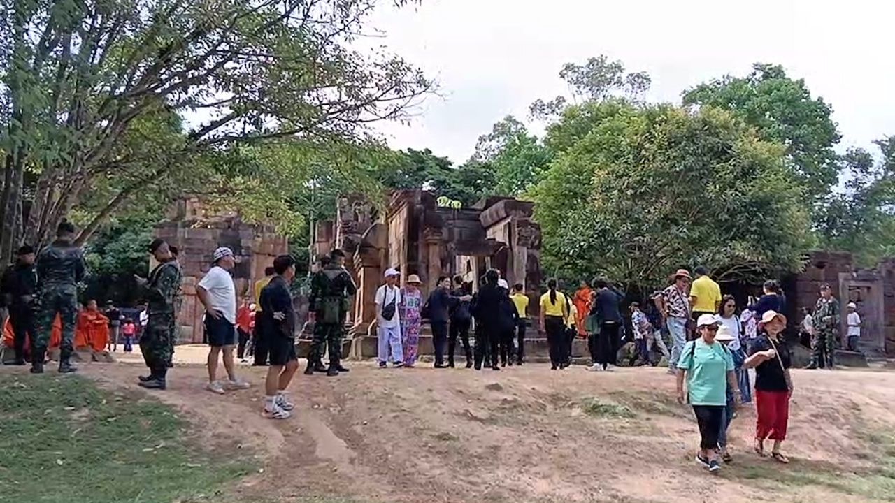 ในขณะที่บรรยากาศที่ปราสาทตาเมือนธม ตำบลตาเมียง อำเภอพนมดงรัก ในวันนี้พบว่ามีนักท่องเที่ยวทั้งชาวไทยและชาวกัมพูชา ขึ้นมาให้กำลังใจทหารและท่องเที่ยวเยี่ยมชมปราสาทอย่างต่อเนื่องตลอดทั้งวัน แต่ไม่มากนัก ท่ามกลางการดูแลอำนวยความสะดวกของทหารทั้ง 2 ฝ่าย หลังจากที่ได้มีเหตุการณ์ความวุ่นวาย หญิงสาวชาวกัมพูชา ชี้หน้าต่อว่าทหารไทยขึ้น ก็ได้มีการตกลงร่วมกัน โดยกำหนดให้ทหารแต่ละฝ่ายเข้ามาอำนวยความสะดวกดูแลนักท่องเที่ยวของแต่ละประเทศ จำนวน 7 นาย