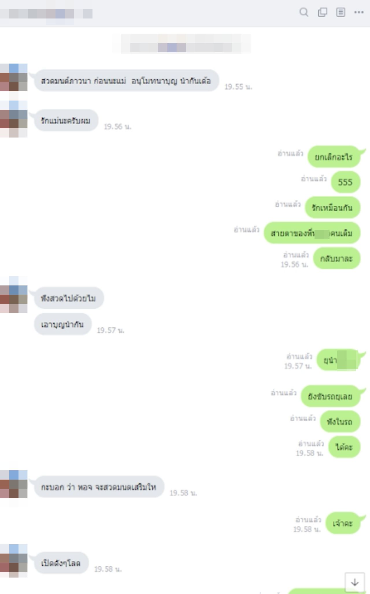 นายก๊อบ (นามสมมติ) อายุ 58 ปี เปิดเผยว่า ภรรยาตนอายุ 50 ปี รู้จักกับพระรูปดังกล่าวพร้อมกันกับตนประมาณ 4 ปี ตอนไปทำบุญที่สำนักสงฆ์ ต่อมาก็เข้าไปทำบุญที่สำนักสงฆ์ตลอดมา จนเมื่อปี 2567 ภรรยาของตนเองได้ขอไปธุระกับพระที่ประเทศลาว ตนเองก็ให้ไป แต่ด้วยความเร่งรีบภรรยาลืมปิดโน้ตบุ๊ก ตนหวังดีจึงไปปิดให้เลยเจอแชทดังกล่าว