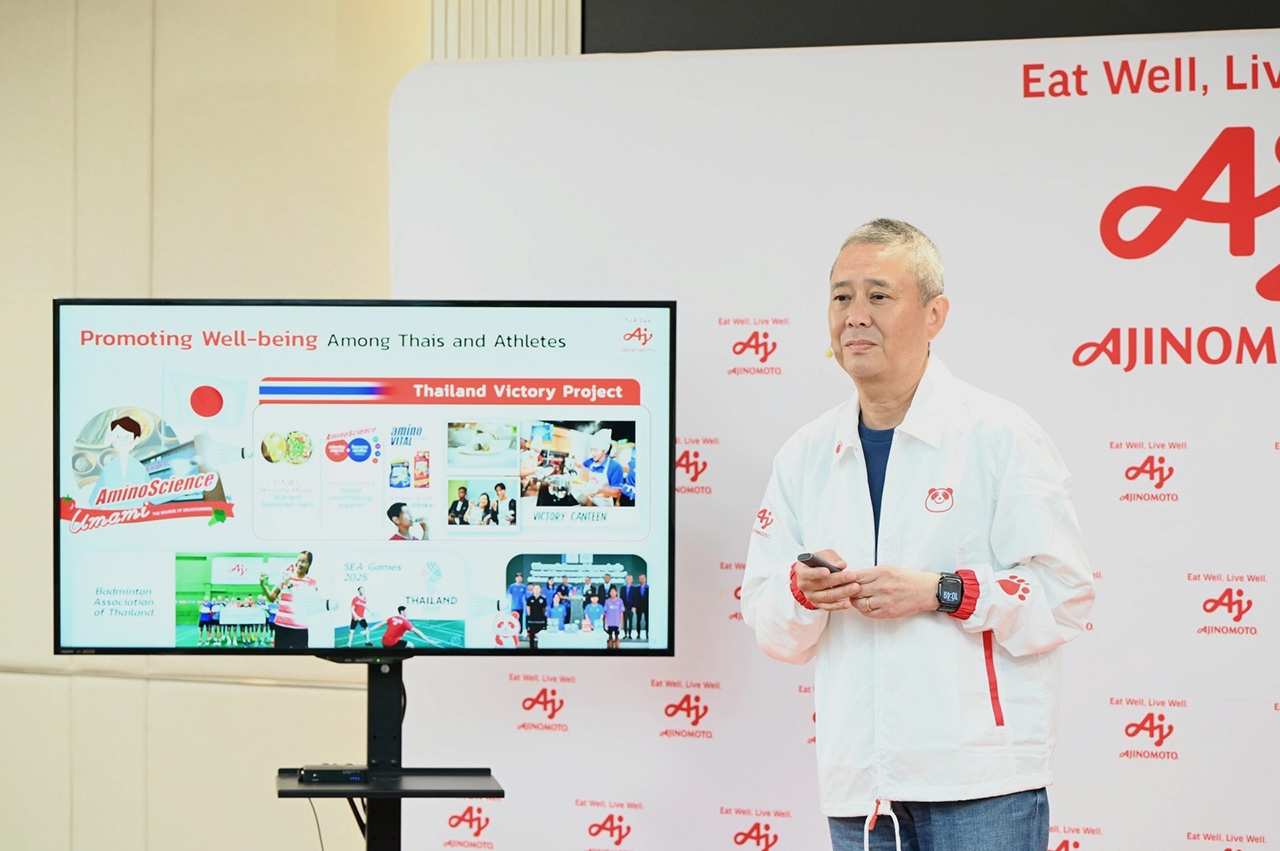 2) หนุนโภชนาการกีฬาให้ทัพนักกีฬาและคนไทย มุ่งสานต่อโครงการ Thailand Victory Project เป็นปีที่ 7 ผ่านการสนับสนุนกีฬาซีเกมส์ 2025 โดยต่อยอดความเชี่ยวชาญในการดูแลโภชนาการกีฬาและจุดแข็งด้าน “AminoScience” จากญี่ปุ่นสู่ไทย มาประยุกต์ใช้ในการสนับสนุนมื้ออาหารแห่งชัยชนะ (Winning Meals® Kachimeshi) ซึ่งเป็นแผนโภชนาการกีฬาที่ออกแบบมาเพื่อส่งเสริมศักยภาพให้กับนักกีฬาทีมชาติไทย ควบคู่กับผลิตภัณฑ์เจลพลังงานอะมิโนไวทัลที่อุดมด้วยกรดอะมิโน นอกจากนี้ ยังเตรียมเปิดตัว Ajinomoto Victory Canteen ซึ่งเป็นการปรับลุคใหม่ให้กับห้องอาหารของนักกีฬา นำเสนอโภชนาการที่ดี และพื้นที่กิจกรรมสำหรับพัฒนาศักยภาพและปลดล็อกพลังแห่งชัยชนะของทัพนักกีฬาไทย