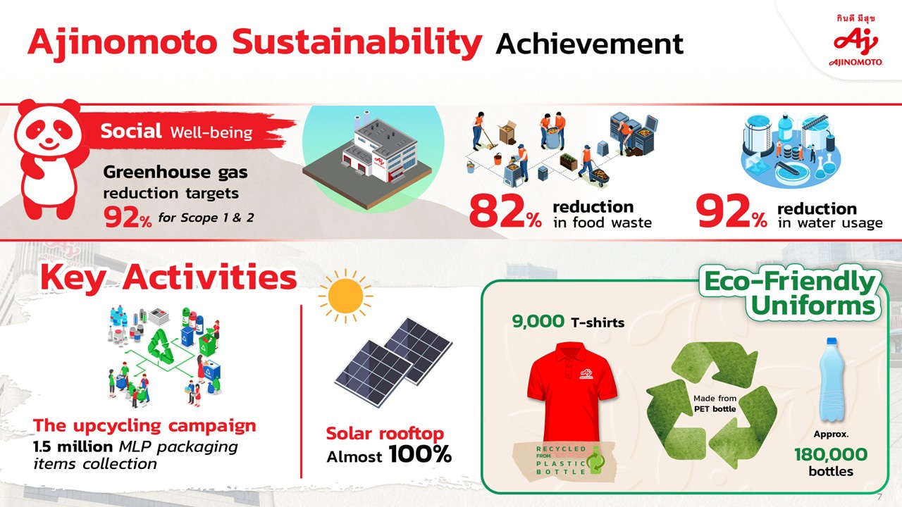 ด้านความยั่งยืนบริษัทฯ ประสบความสำเร็จในการบรรลุเป้าหมายการลดคาร์บอนทั้งหมด ประกอบด้วย การลดคาร์บอน 92% สำหรับ Scope 1 และ 2 และยังบรรลุเป้าหมายด้านการลดของเสียจากอาหารที่ 82% (1,600 ตัน) ลดการใช้น้ำ 92% และยังจัดทำแคมเปญ Upcycling เก็บกลับพลาสติกได้กว่า 1.5 ล้านชิ้น ผ่านความร่วมมือกับพันธมิตรที่หลากหลาย การปรับเปลี่ยนชุดยูนิฟอร์มสำหรับพนักงานขายและพนักงานโรงงานเป็นเสื้อที่ทำมาจากพลาสติกรีไซเคิล และการติดตั้งหลังคาพลังงานแสงอาทิตย์ได้เกือบ 100% ที่โรงงานผลิต