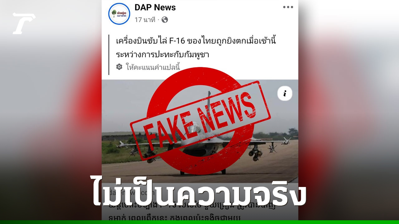 ล่าสุด วันที่ 24 ก.ค. 2568 เฟซบุ๊ก กองทัพอากาศไทย Royal Thai Air Force โพสต์ข้อความโดยระบุว่า "Fake News จากกรณีสื่อประเทศกัมพูชาอ้างว่า เครื่องบิน F-16 ของกองทัพอากาศไทยถูกยิงตกในช่วงเช้านั้น "ไม่เป็นความจริงแต่อย่างใด" #FakeNews ขอให้ประชาชนติดตามข่าวจากแหล่งข่าวที่น่าเชื่อถือเท่านั้น".