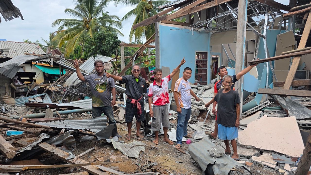 นายสมรัตน์ สุพรรณ อายุ 59 ปี ชาวบ้านข้างเคียงจุดเกิดเหตุเปิดเผยว่าขณะที่ตนเองกลับมาจากบังเกอร์เพื่อมาดูแลบ้าน ระหว่างนั้นตนได้ยินเสียงระเบิดอยู่กลางหมู่บ้านเชื่อว่าจะต้องมีลูกระเบิดตกในหมู่บ้านแน่นอน ยังไม่ทันเข้าบ้านลูกระเบิดอีก 1 ลูกมาตกข้างบ้านของตนได้รับความเสียหาย แต่โชคดีที่ไม่มีใครได้รับบาดเจ็บแต่อย่างใด