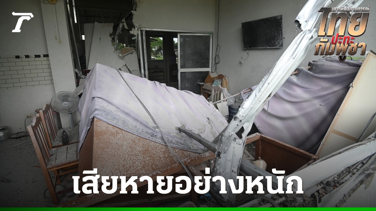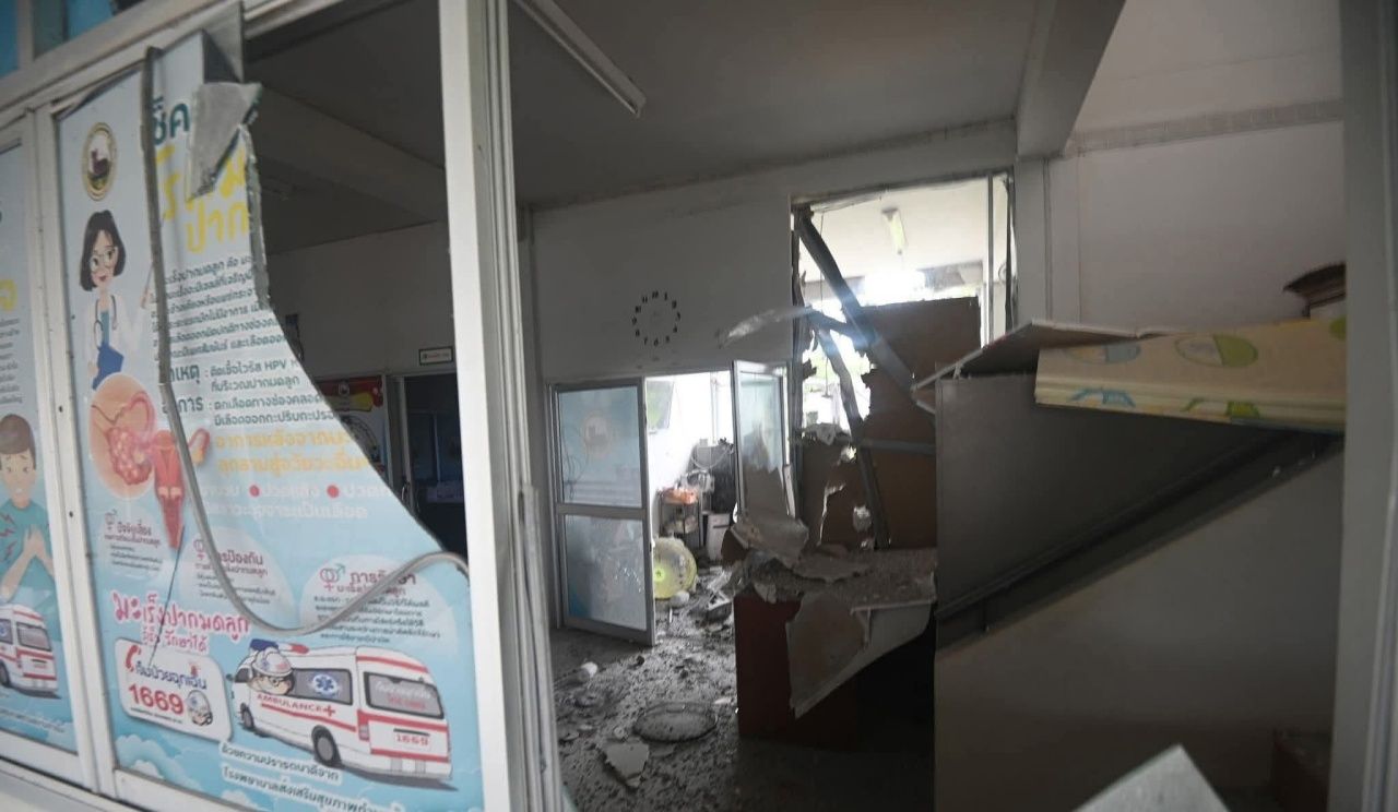 เปิดภาพความเสียหาย "โรงพยาบาลส่งเสริมสุขภาพตำบล" ใน อ.กันทรลักษ์ หลังถูกกระสุนปืนใหญ่จากกัมพูชายิงทะลุเข้าตัวอาคารเสียหายหนัก
