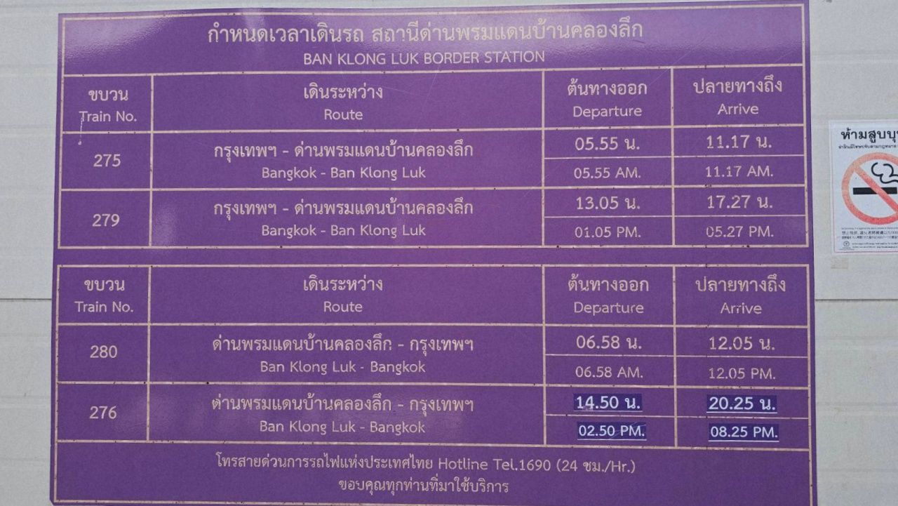 การรถไฟแห่งประเทศไทยขอให้ประชาชนตรวจสอบตารางเวลาเดินรถได้ที่สถานีรถไฟทุกแห่ง หรือสอบถามเพิ่มเติมได้ที่ศูนย์บริการลูกค้าสัมพันธ์ โทรศัพท์สายด่วน 1690 ตลอด 24 ชั่วโมง การรถไฟแห่งประเทศไทย (รฟท.) ประกาศกลับมาเดินรถไฟในเส้นทางสายตะวันออกตามปกติแล้ว หลังประกาศหยุดเดินรถจากสถานการณ์ความตึงเครียดชายแดนไทย-กัมพูชา