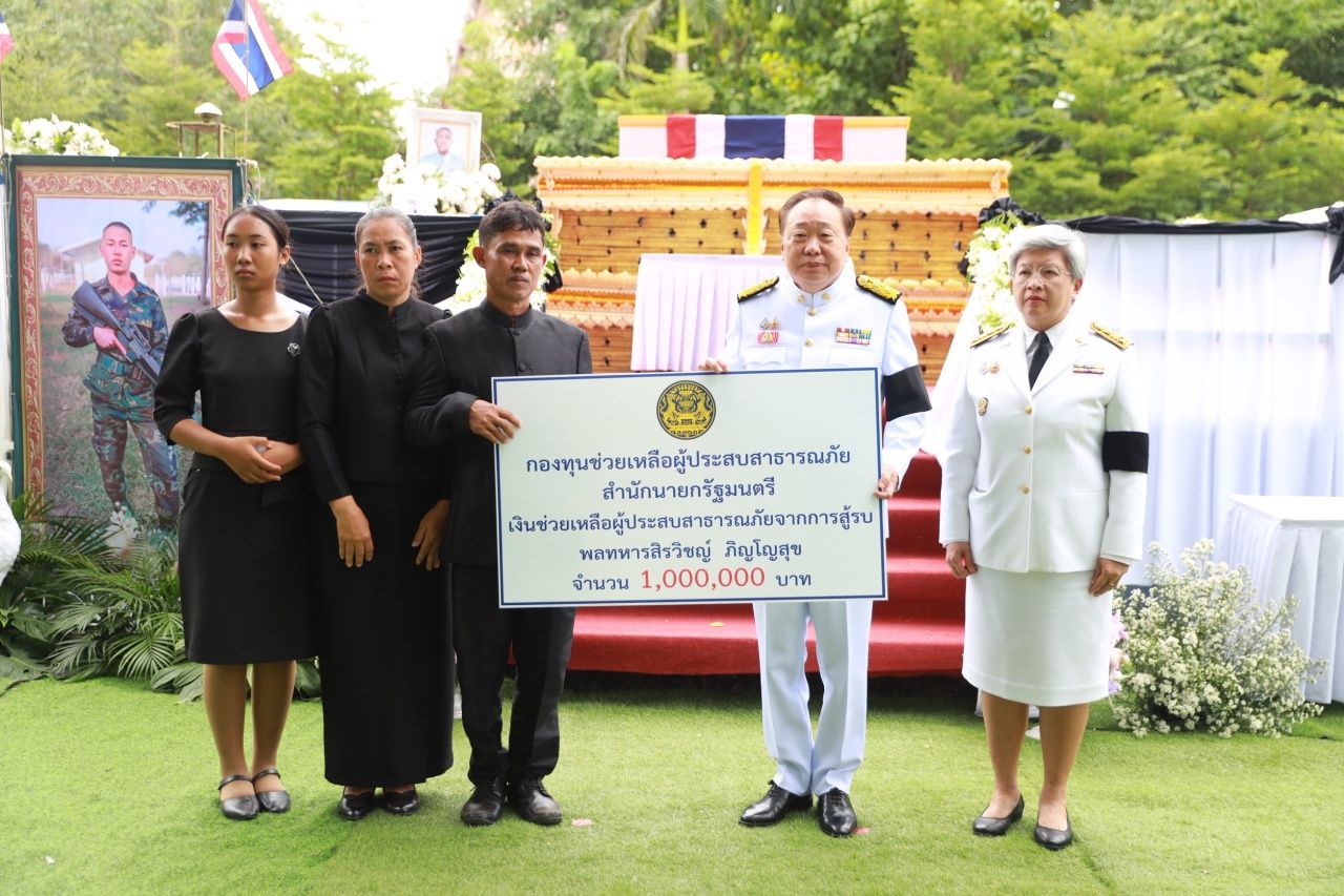 โดยในการนี้ พลเอก เอกรัตน์ ช้างแก้ว ประธานคณะที่ปรึกษากองทัพบก (ปธ.คปษ.ทบ.) มอบเงินพระราชทานจากพระบาทสมเด็จพระเจ้าอยู่หัวและสมเด็จพระบรมราชินีนาถ แก่ครอบครัวพลทหาร สิรวิชญ์ ภิญโญสุข จำนวน 50,000 บาท และเงินบำรุงขวัญจากผู้บัญชาการทหารบก จำนวน 40,000 บาท และมอบเงินสินไหมทดแทนจากกองทัพบก 800,000 บาท ในขณะเดียวกัน นายสุชาติ ตันเจริญ รัฐมนตรีประจำสำนักนายกรัฐมนตรี มอบเงินจำนวน 1,000,000 บาทให้กับครอบครัวผู้เสียชีวิตด้วย