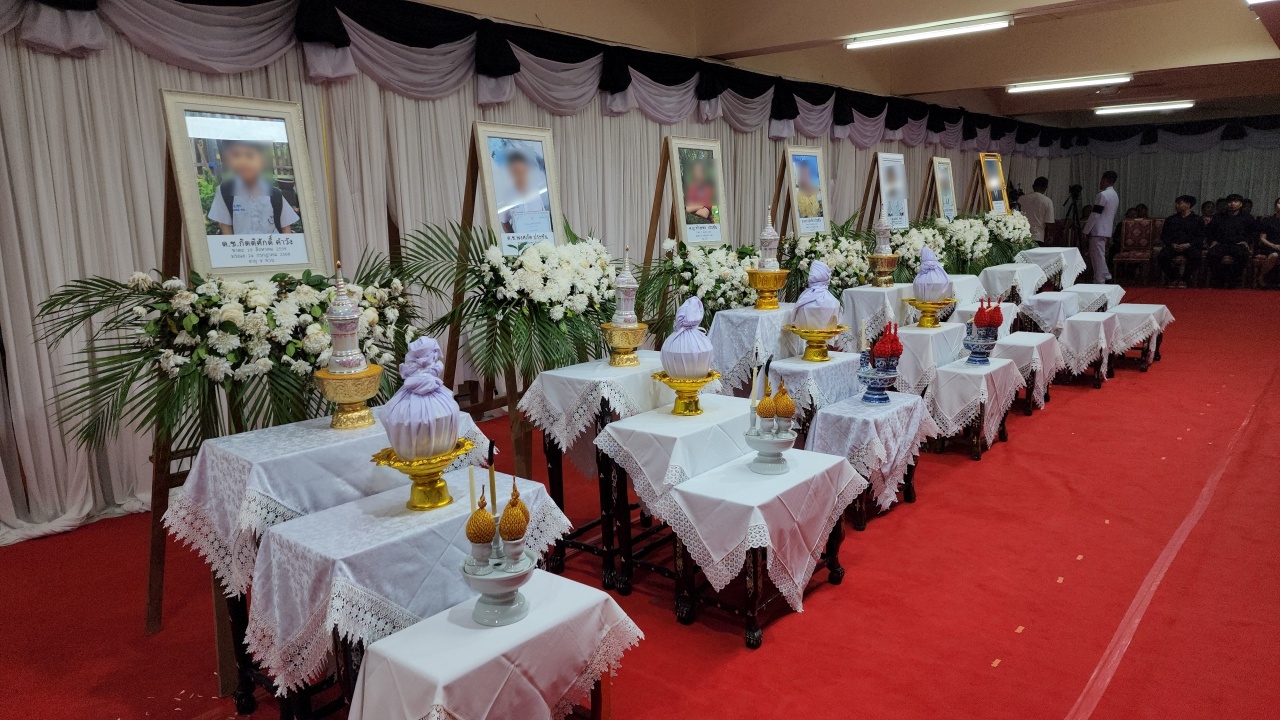 พิธีจัดขึ้น ณ เมรุวัดมหาพุทธาราม พระอารามหลวง ตำบลเมืองเหนือ อำเภอเมืองศรีสะเกษ โดยมี นายอนุพงศ์ สุขสมนิตย์ ผู้ว่าราชการจังหวัดศรีสะเกษ เป็นประธานในพิธี พร้อมด้วยครอบครัวของผู้เสียชีวิต และเจ้าหน้าที่จากหน่วยงานต่าง ๆ เข้าร่วมอย่างพร้อมเพรียง