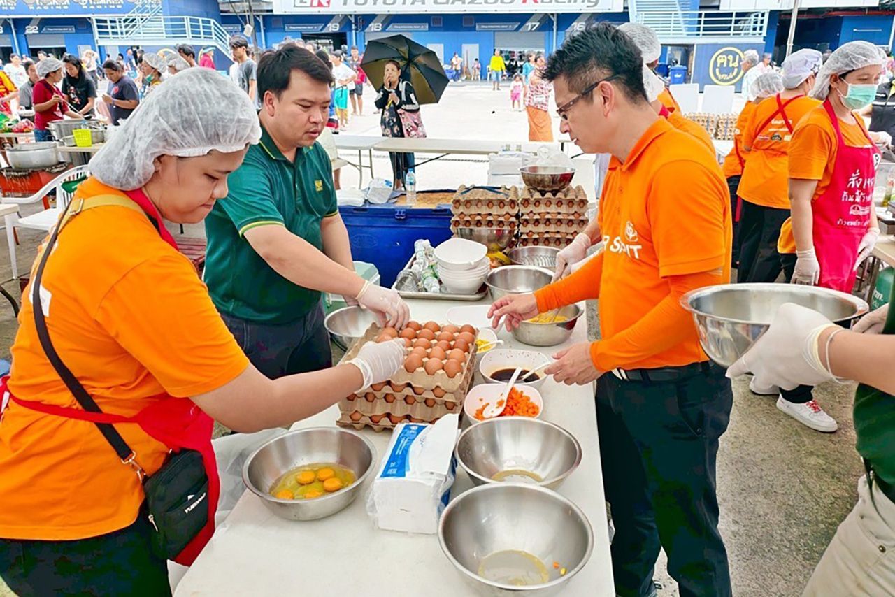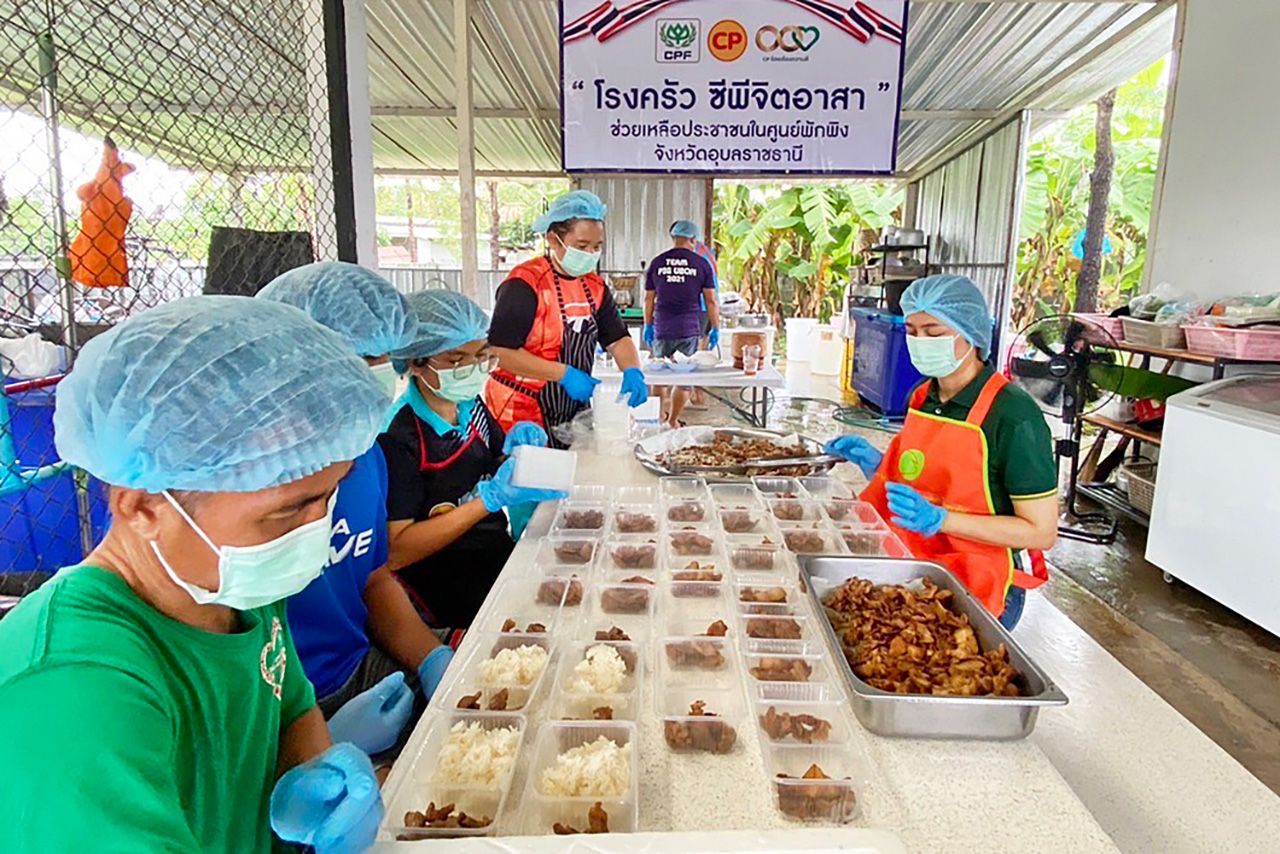 ที่สำคัญยังมีโรงครัวจิตอาสา 2 แห่ง คือ ที่โรงครัวซีพีจิตอาสาศูนย์สุรินทร์ และโรงครัวซีพีจิตอาสาศูนย์อุบลราชธานี ที่มีทีมจิตอาสาช่วยกันทำอาหารกลางวัน 1,000 กล่องต่อวัน พร้อมกับน้ำดื่ม CP ส่งมอบแก่ศูนย์พักพิงและศูนย์อพยพทั้งหมด 7 ศูนย์ และสนับสนุนวัตถุดิบแก่หน่วยงานภาครัฐอีก 2 แห่ง เพื่อดูแลผู้อพยพและเจ้าหน้าที่ที่ทำงานในพื้นที่เป้าหมายอย่างต่อเนื่อง นับตั้งแต่เกิดเหตุชายแดนไทย-กัมพูชาวันแรกเมื่อ 24 ก.ค. 2568 เป็นต้นมา