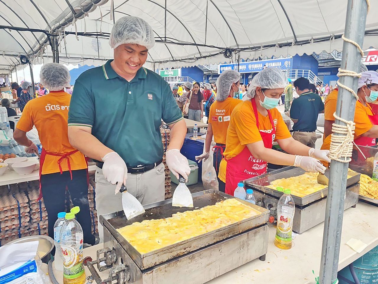 ฟาร์มไก่ไข่จักราช จ.นครราชสีมา ในส่วนของธุรกิจไก่ไข่ได้ร่วมมือกับโรงข้าวบุรีรัมย์ของซีพี ปรุงเมนูข้าวไข่เจียว วันละ 1,000 กล่อง มอบให้กับผู้ประสบภัยที่พักในศูนย์อพยพ จ.บุรีรัมย์ ต่อเนื่องทุกวันจนกว่าจะปิดศูนย์อพยพ