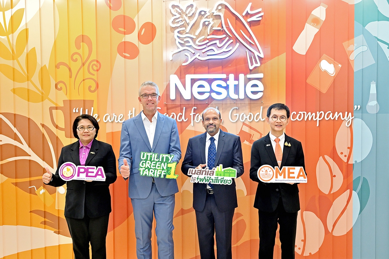 บริษัท เนสท์เล่ (ไทย) จำกัด เดินหน้าใช้ไฟฟ้าสีเขียวจากพลังงานหมุนเวียนในโรงงานผลิต 6 แห่งในประเทศไทย ด้วยความร่วมมือกับการไฟฟ้านครหลวง (กฟน.) และการไฟฟ้าส่วนภูมิภาค (กฟภ.) ภายใต้โครงการ Utility Green Tariff 1 (UGT1) ซึ่งเป็นการให้บริการไฟฟ้าสีเขียวแบบไม่เจาะจงแหล่งที่มา ความร่วมมือดังกล่าวเป็นไปตามเป้าหมายของเนสท์เล่ ประเทศไทย ในการใช้ไฟฟ้าจากพลังงานหมุนเวียน 100% ในโรงงานผลิตภายในปีนี้ ซึ่งเป็นส่วนหนึ่งของแผนงาน Net Zero 2050 เพื่อลดการปล่อยก๊าซเรือนกระจกสุทธิเป็นศูนย์ภายในปี 2050 และส่งมอบผลิตภัณฑ์อาหารและเครื่องดื่มคุณภาพที่ผลิตจากแหล่งพลังงานที่ยั่งยืนให้กับผู้บริโภคไทย