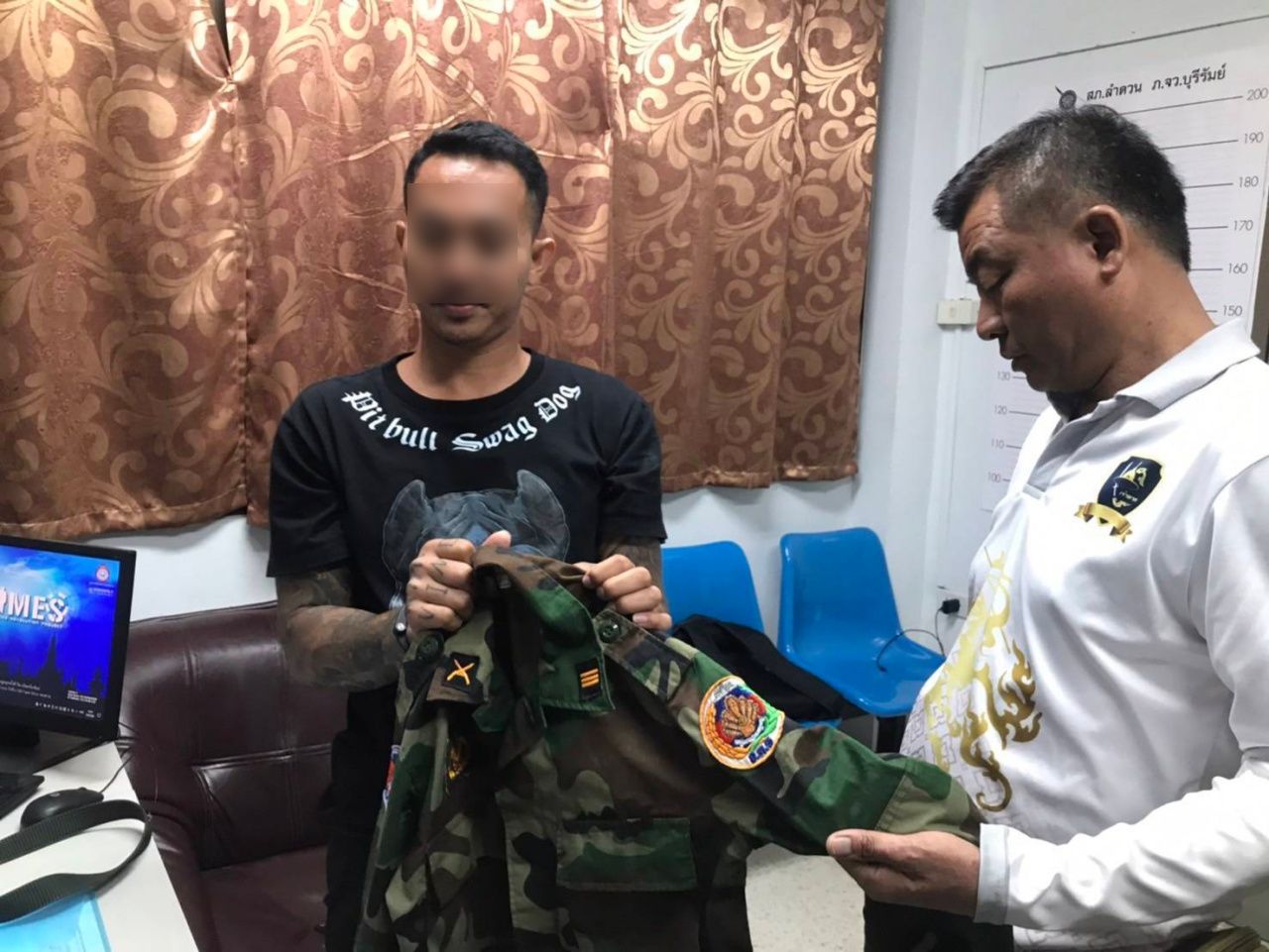 ซึ่งจากการตรวจค้นภายในบ้านพบอาวุธปืน 1 กระบอก และชุดทหารเขมร ยศร้อยเอก และติดตราสัญลักษณ์หน่วย BHQ องครักษ์พิทักษ์ฮุนเซน อีกหลายชุด เบื้องต้นตำรวจคาดว่ามาฝังตัวส่งความเคลื่อนไหวทางการทหารไทยให้ฝ่ายกัมพูชา