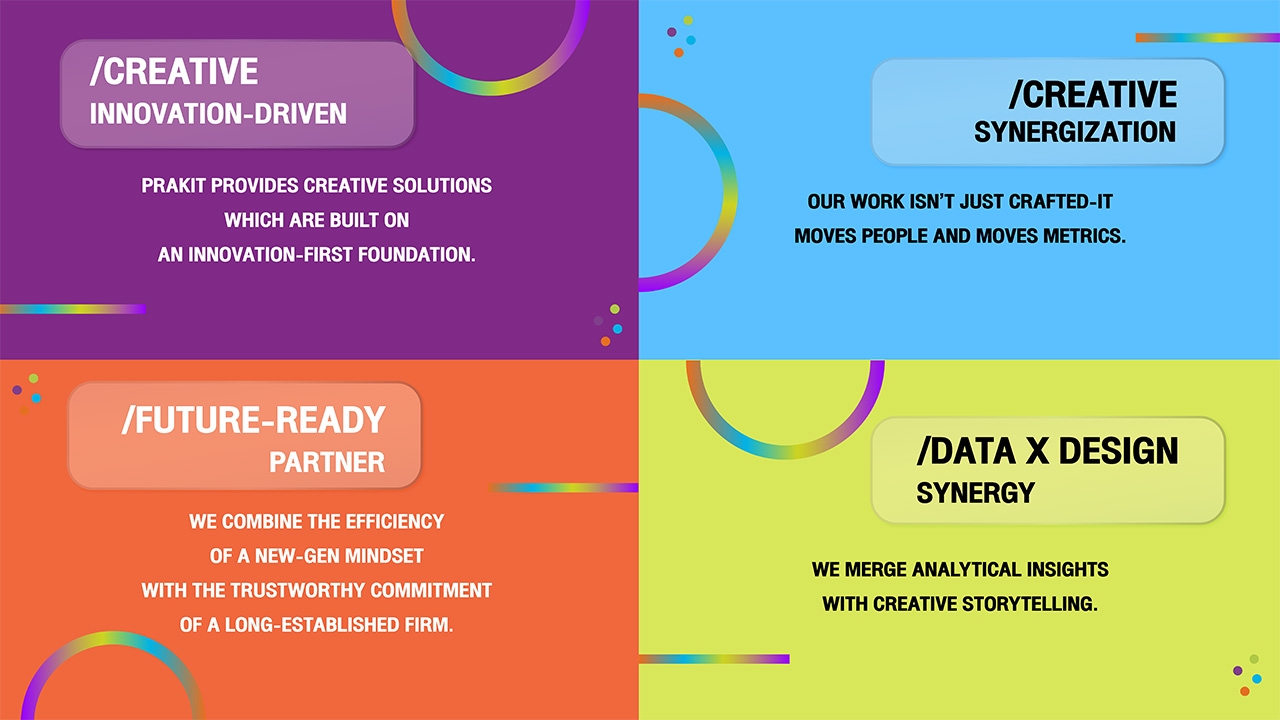 บริการของ Prakit ครอบคลุมตั้งแต่การวางกลยุทธ์ ไปจนถึงการบริหารจัดการสื่อและเนื้อหาแบบครบวงจร