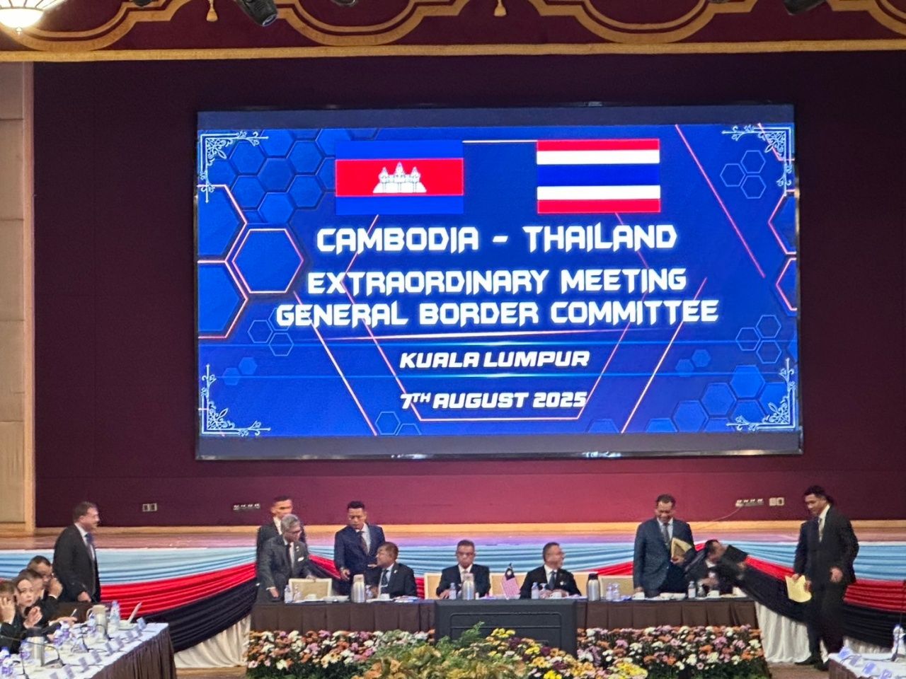 ความเคลื่อนไหวเกี่ยวกับสถานการณ์ชายแดนไทย-กัมพูชา เมื่อเวลา 14:00 น. ตามเวลาในประเทศมาเลเซีย หรือ 13:00 น. ตามเวลาในประเทศไทย ของวันที่ 7 สิงหาคม 2568 ผู้สื่อข่าวรายงานว่า เริ่มแล้วสำหรับการประชุมคณะกรรมการชายแดนทั่วไป (General Border Committee: GBC) ไทย-กัมพูชา สมัยวิสามัญ ฝ่ายไทยมี พล.อ.ณัฐพล นาคพาณิชย์ รัฐมนตรีช่วยว่าการกระทรวงกลาโหม รักษาการแทนรัฐมนตรีว่าการกระทรวงกลาโหม เป็นหัวหน้าคณะ ขณะที่ฝ่ายกัมพูชามี พลเอกเตีย เสรย-ฮา รองนายกรัฐมนตรี และรัฐมนตรีว่าการกระทรวงกลาโหมกัมพูชา เป็นหัวหน้าคณะ อีกทั้งมีผู้แทนของประเทศผู้ร่วมสังเกตการณ์ ได้แก่ มาเลเซีย สหรัฐฯ และจีน เข้าร่วมด้วย