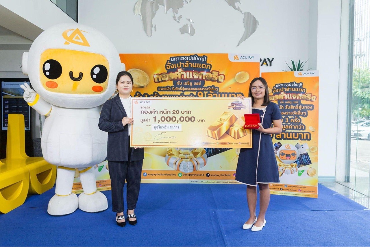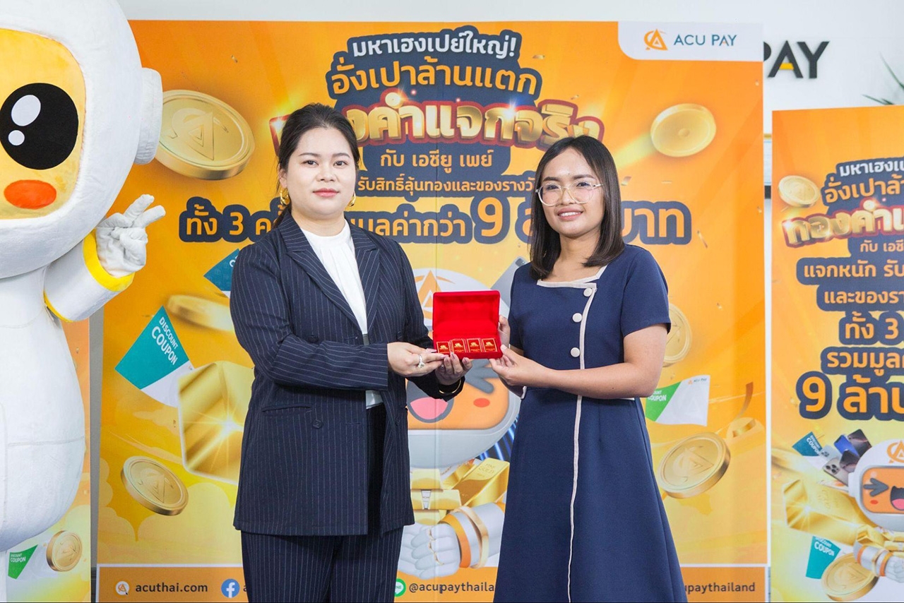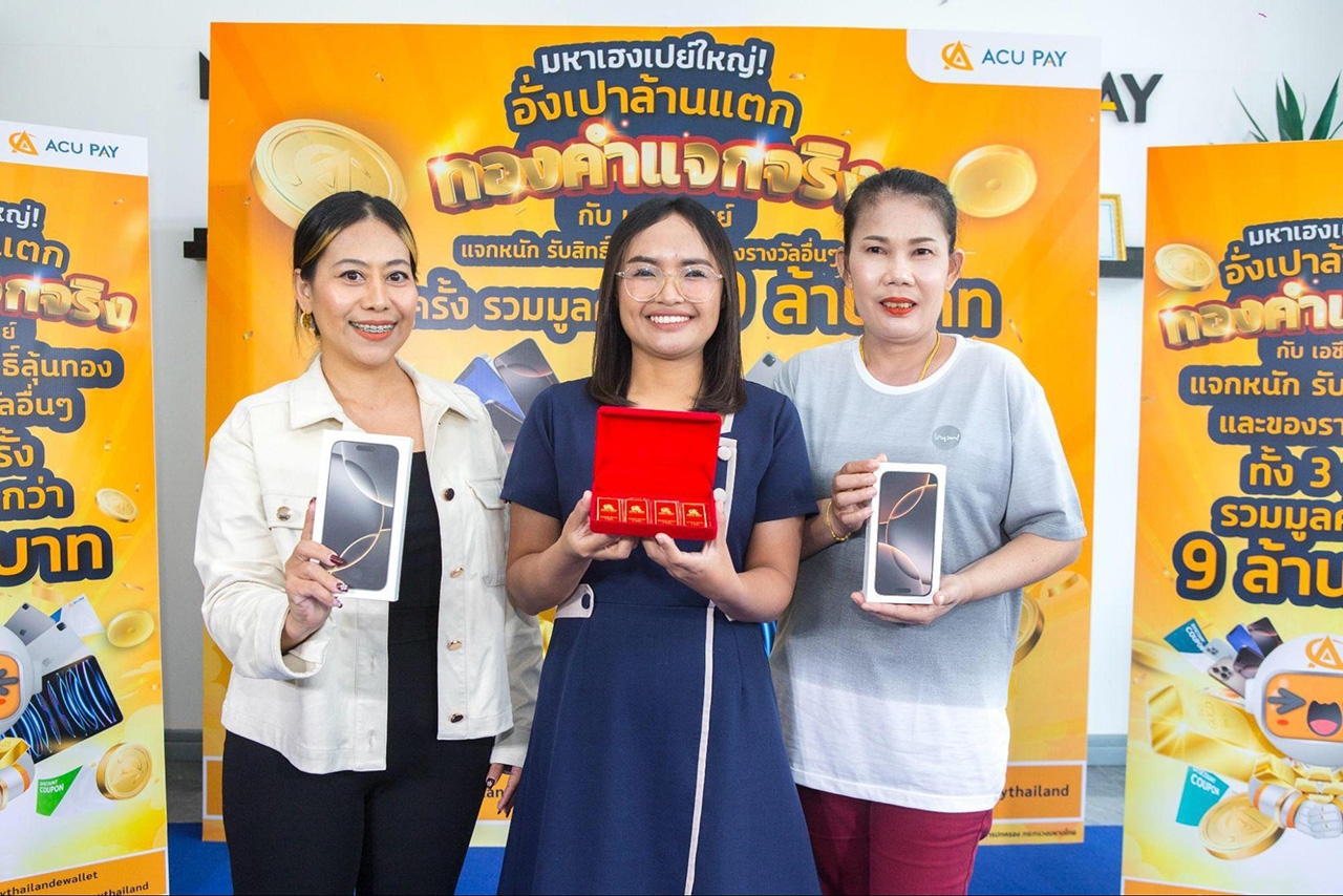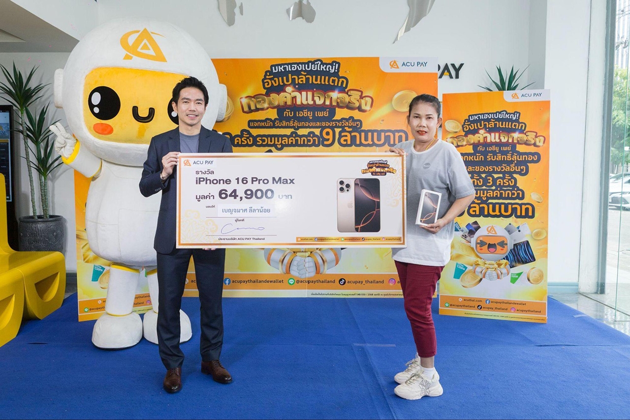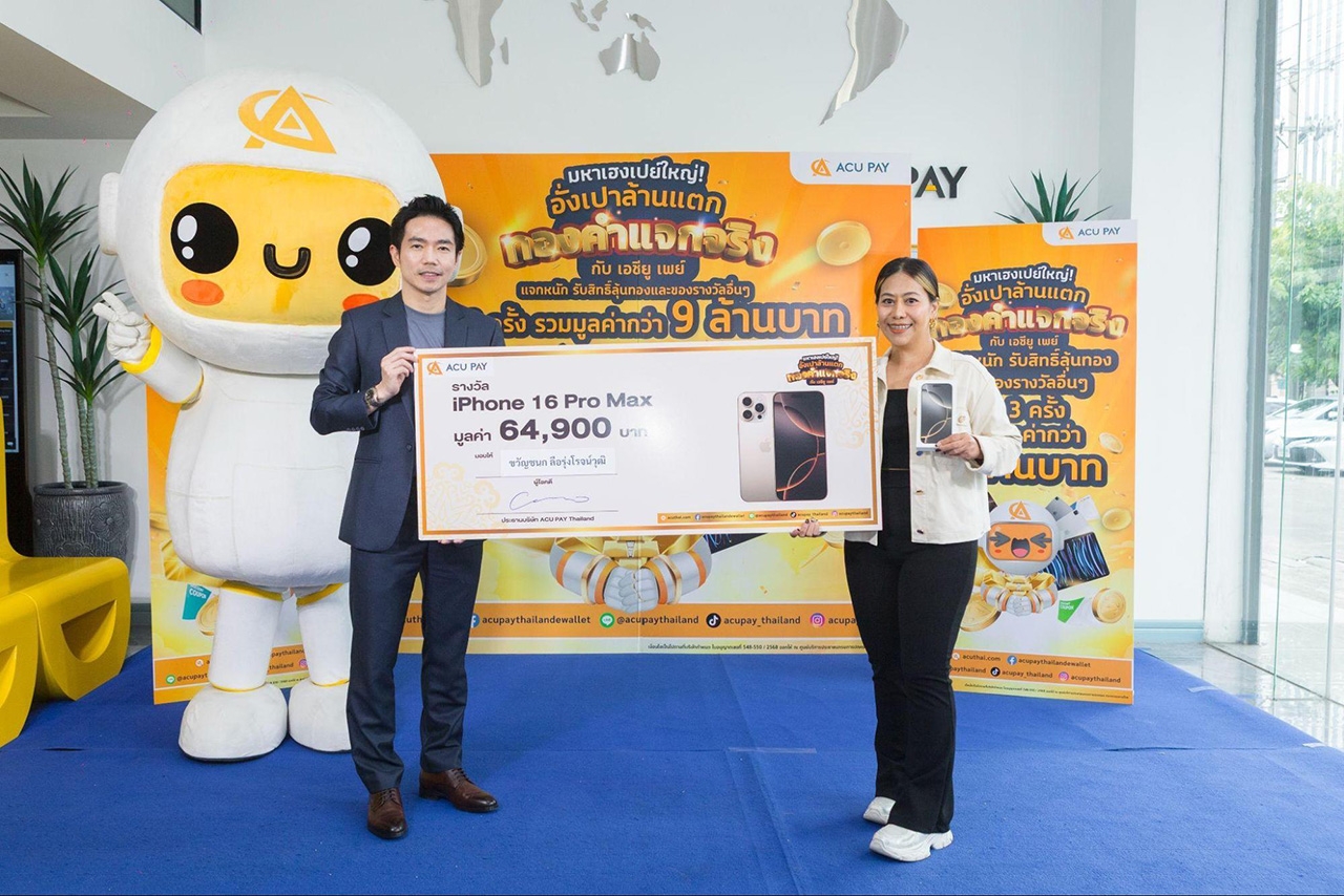 บริษัท เอซียู เพย์ (ไทยแลนด์) จำกัด จัดพิธีมอบรางวัลให้แก่ผู้โชคดีจากแคมเปญ "มหาเฮงเปย์ใหญ่! อั่งเปาล้านแตก ทองคำแจกจริง กับ ACU PAY ครั้งที่ 1" ซึ่งได้มีการจับรางวัลและประกาศรายชื่อผู้โชคดีผ่านเพจเฟซบุ๊ก Thairath - ไทยรัฐออนไลน์ เมื่อวันศุกร์ที่ 25 กรกฎาคม 2568 ที่ผ่านมา โดยรางวัลในครั้งนี้ประกอบไปด้วย ทองคำแท่งน้ำหนัก 20 บาท มูลค่า 1,000,000 บาท, iPhone 16 รุ่น Pro Max (1TB) และ iPad Pro รุ่น 11 นิ้ว (M4) Wi-Fi + Cellular ขนาด 512 GB