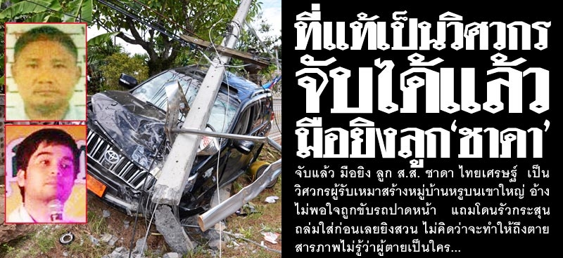 จับแล้วมือยิง ลูก ส.ส.ชาดา ไทยเศรษฐ์ เป็นวิศวกรผู้รับเหมาสร้างหมู่บ้านหรูบนเขาใหญ่ อ้างไม่พอใจถูกขับรถปาดหน้า แถมโดนรัวกระสุนถล่มใส่ก่อนเลยยิงสวน ไม่คิดว่าจะทำให้ถึงตาย สารภาพไม่รู้ว่าผู้ตายเป็นใคร...