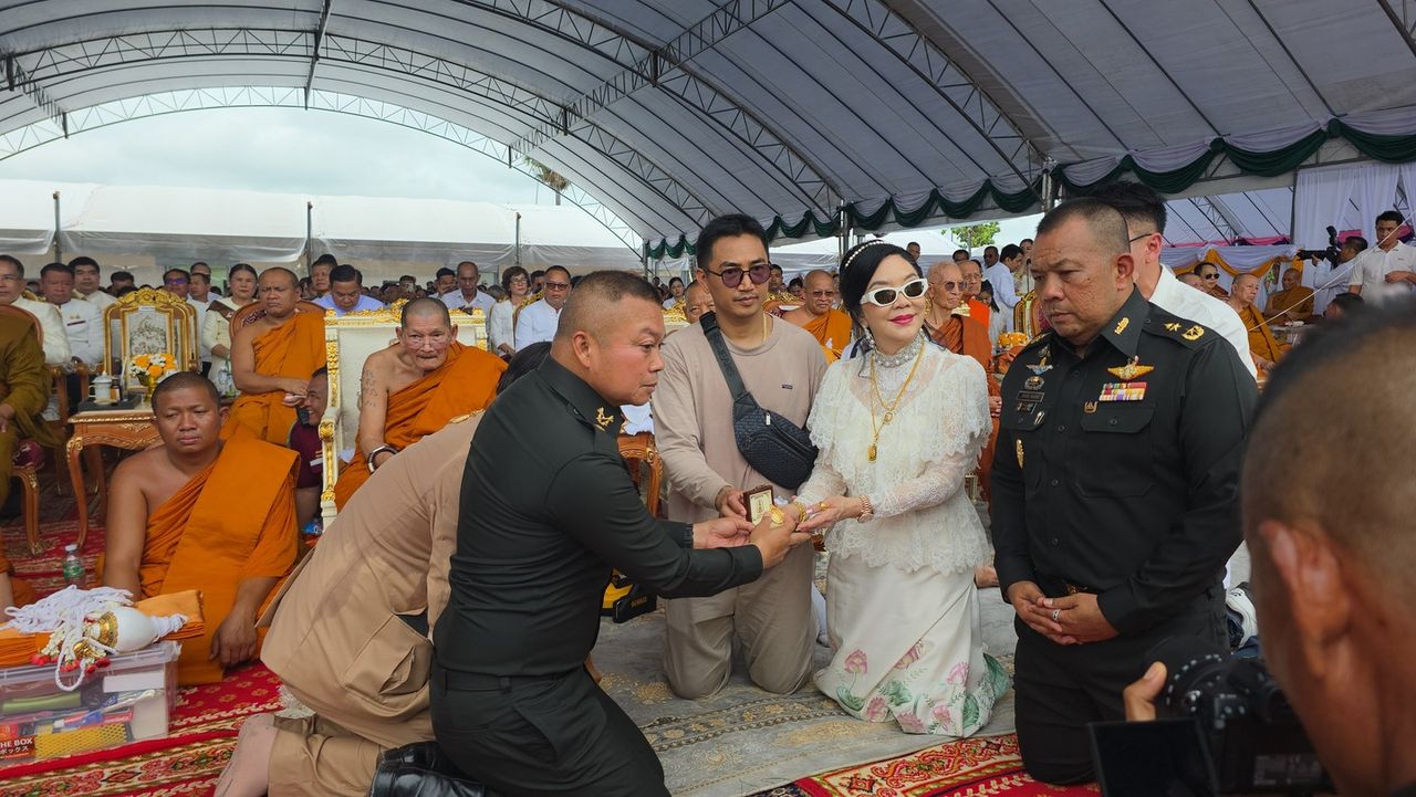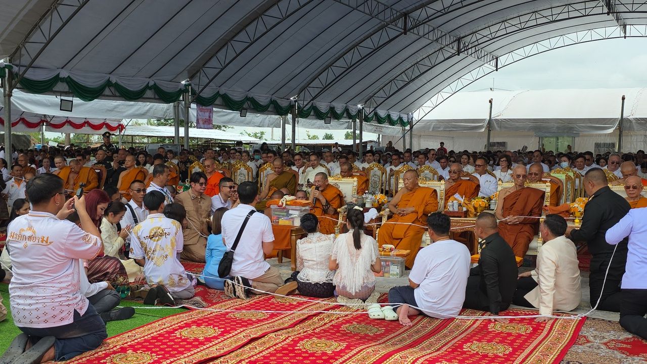 เมื่อเวลา 10.09 น. วันที่ 17 ส.ค. 2568 ผู้สื่อข่าวรายงานว่า วันนี้ฤกษ์งามยามดีเป็นสิริมงคล คณะสงฆ์ อุบาสก อุบาสิกา พุทธศาสนิกชน ได้พร้อมกันจัดพิธีฉลองประกาศตั้ง วัดสวนธรรมปีติ และยกเสาเอกเสาโท เจดีย์โนนสาวเอ้ ณ วัดสวนธรรมปีติ ตำบลเชียงเครือ อำเภอเมือง จังหวัดกาฬสินธุ์ โดยงานนี้ลูกศิษย์คนดังของ หลวงปู่ศิลา สิริจันโท อย่างท่าน พล.ท.บุญสิน พาดกลาง แม่ทัพภาคที่ 2 เดินทางมาร่วมพิธีอันศักดิ์สิทธิ์ พบมีประชาชนและเหล่า FC มารอต้อนรับเพื่อมอบกำลังใจ และขอบคุณที่ทำหน้าที่ปกป้องอธิปไตยของไทยอย่างเต็มความสามารถจำนวนมาก โดยแม่ทัพภาคที่ 2 ได้นำพระพุทธรูปโบราณมาถวายหลวงปู่ศิลาด้วย