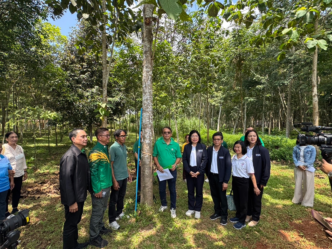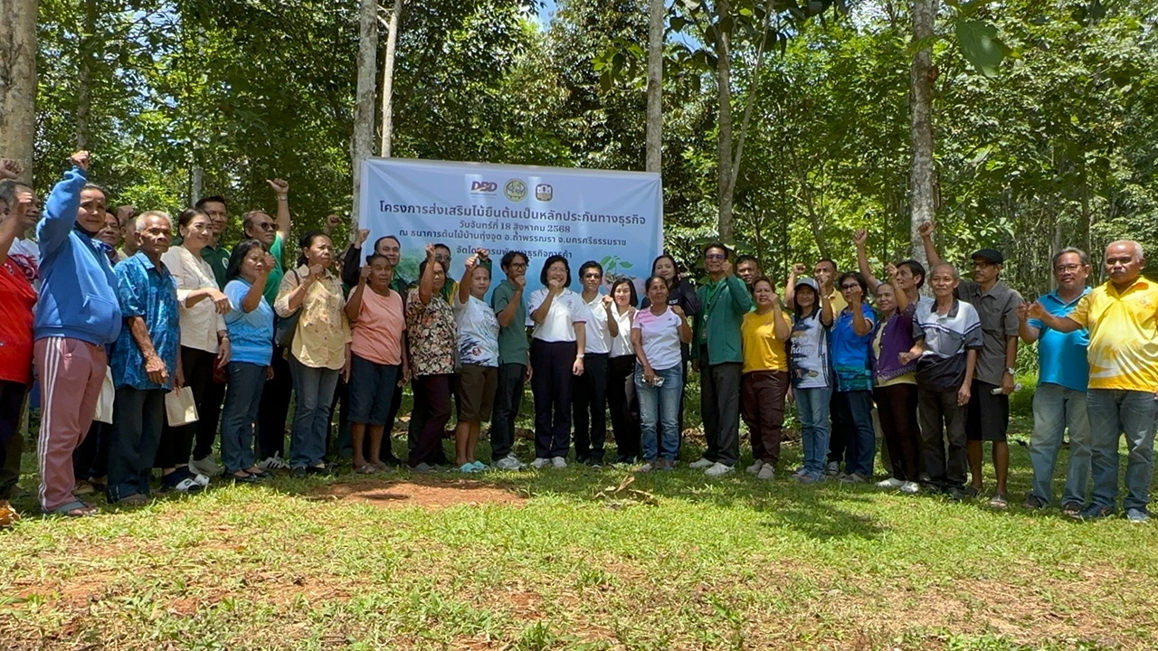 นางอรมน ทรัพย์ทวีธรรม อธิบดีกรมพัฒนาธุรกิจการค้า กระทรวงพาณิชย์ พร้อมด้วยคณะผู้บริหารธนาคารเพื่อการเกษตรและสหกรณ์การเกษตร (ธ.ก.ส.) ร่วมมอบวงเงินจดทะเบียนไม้ยืนต้นเป็นหลักประกันธุรกิจแก่นายสุมิตร ศรีวิสุทธิ์ เกษตรกรที่ได้รับวงเงินสินเชื่อ 50,000 บาท จากการนำไม้ยืนต้นที่ปลูกบนที่ดินของตนเอง จำนวน 137 ต้น ได้แก่ ต้นสักทอง 100 ต้น ต้นตะเคียนทอง 21 ต้น ต้นแดง 9 ต้น ต้นพะยูง 6 ต้น และต้นมะขาม 1 ต้น มาเป็นหลักประกันทางธุรกิจ ซึ่งนายสุมิตร ถือเป็นเกษตรกรรายแรกในจังหวัดนครศรีธรรมราช ที่ได้รับการอนุมัติสินเชื่อในเวลาไม่นาน พร้อมเป็นการเปิดประตูให้เกษตรกรและกลุ่มผู้ประกอบการ SME ได้เห็นคุณค่าของไม้ยืนต้นที่สามารถนำมาแปรเปลี่ยนเป็นเงินนำไปต่อยอดในชีวิตประจำวันได้ โดยไม่ต้องตัดต้นไม้ และสามารถนำไม้ยืนต้นที่มีการเจริญเติบโตมาเพิ่มมูลค่าและเป็นหลักประกันการขอสินเชื่อ โดยข้อมูลปัจจุบัน เมื่อวันที่ 14 สิงหาคม 2568 ได้มีเกษตรกร และ SME ทั่วประเทศนำไม้ยืนต้นมาเป็นหลักประกันทางธุรกิจแล้ว 170,026 ต้น (รวม 312 สัญญา) วงเงินรวม 186,122,768.04 บาท