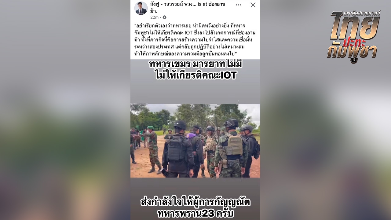 “กังฟู” ซัด “ทหารกัมพูชา” ป่วนช่องอานม้า เหตุไทยพา IOT ลงพื้นที่ บอกทั้งที่เป็นภารกิจสร้างความโปร่งใส-ความเชื่อมั่นระหว่างสองประเทศ แต่กลับถูกปฏิบัติอย่างไม่เหมาะสม