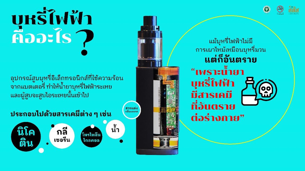"ศูนย์วิจัยและจัดการความรู้เพื่อการควบคุมยาสูบบุหรี่ไฟฟ้า: ส่วนประกอบ ความเสี่ยง และข้อเสียบุหรี่ไฟฟ้าต่อสุขภาพ/ปอด/หัวใจ