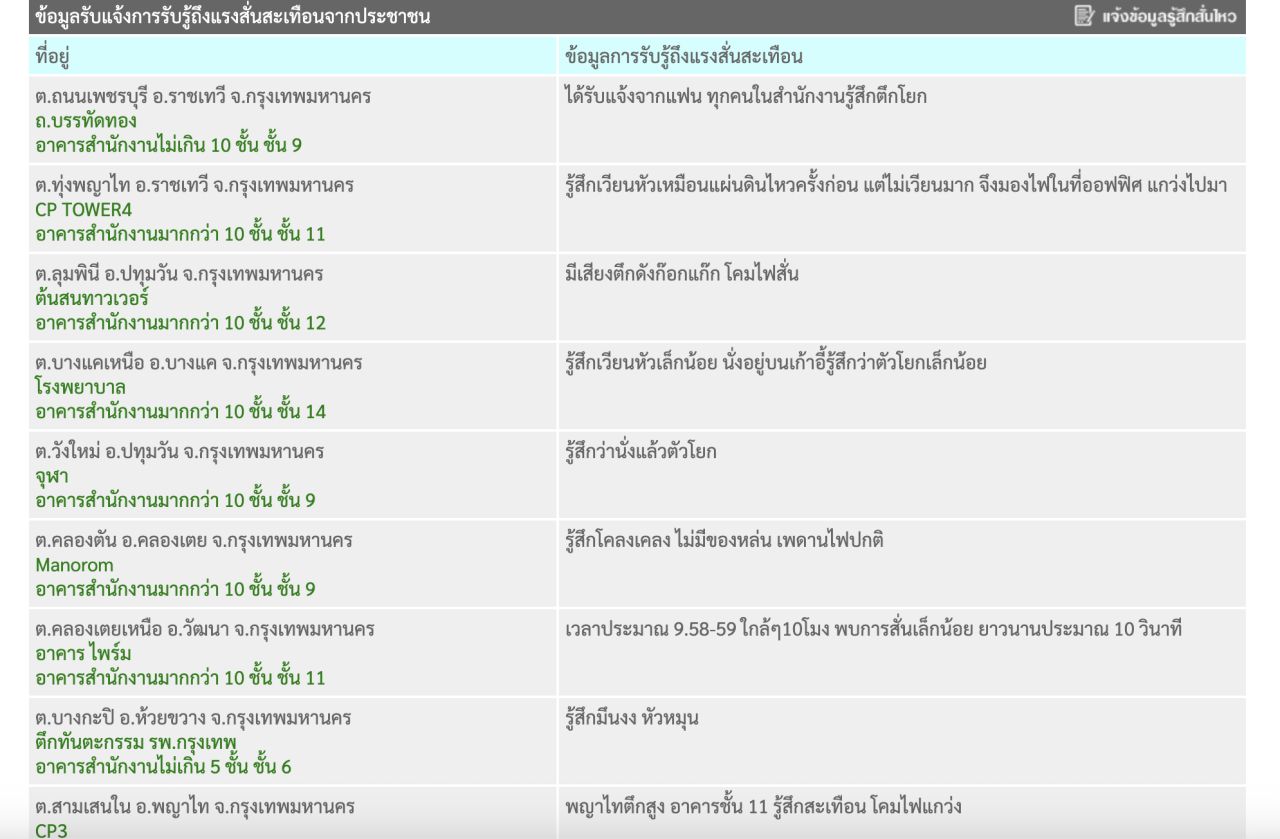 อย่างไรก็ตาม พบว่าหลายพื้นที่ตึกสูงใน กทม. ได้มีการแจ้งการรับรู้ถึงแรงสั่นสะเทือนจากประชาชน ซึ่งหากมีรายละเอียดเพิ่มเติมจะแจ้งให้ทราบโดยด่วนต่อไป.