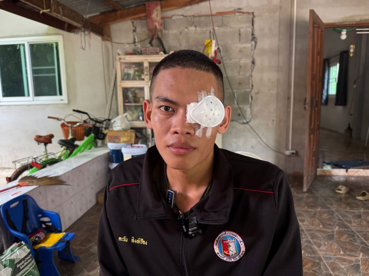 ความเคลื่อนไหวสถานการณ์ชายแดนไทย-กัมพูชา เมื่อวันที่ 21 สิงหาคม 2568 จากกรณี พลทหารตะวัน สิงห์เรือง อายุ 21 ปี หรือน้องเต้ย ชาว อ.ลานกระบือ จ.กำแพงเพชร สังกัด ร.4 พัน 1 ค่ายจิรประวัติ จ.นครสวรรค์ หลังได้รับบาดเจ็บจากการสู้รบถูกลูกระเบิดสูญเสียดวงตาข้างซ้ายที่ภูมะเขือ จ.อุบลราชธานี เมื่อวันที่ 28 ก.ค.ที่ผ่านมา กลับมาพักรักษาตัวอยู่ที่บ้าน ซึ่งตลอดการรักษาก็ยังมีอาการผวาและสะดุ้งตื่นจากเหตุการณ์สู้รบทุกคืน โดยผู้เป็นป้าได้ถ่ายคลิปวิดีโอขณะที่พลทหารตะวันเกิดอาการไว้
