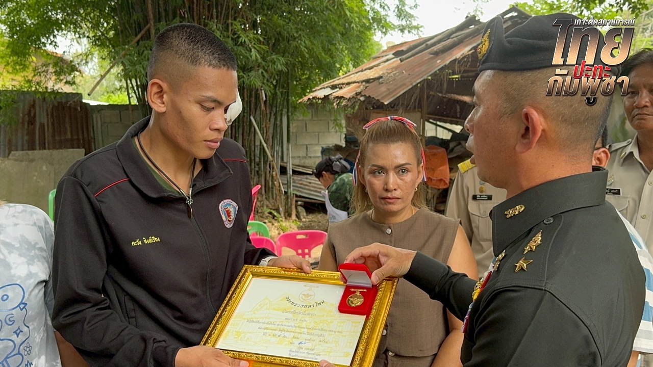 กลาโหมเชิดชูทหารกล้าเหตุสู้รบไทย-กัมพูชา มอบ “เหรียญบางระจัน” ให้ “พลทหารตะวัน” ผู้เสียสละดวงตาข้างซ้ายเพื่อปกป้องอธิปไตยชาติ เจ้าตัวรับกังวลเรื่องอนาคตการทำงาน มีความหวังอยากรับราชการต่อ เป็น “นักรบชุดดำ”