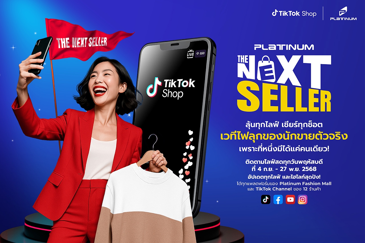 ศูนย์การค้าแพลทินัม สานต่อโครงการ Platinum Empowering SMEs 2025: Rack to Rise อย่างยิ่งใหญ่ ภายใต้แนวคิด “Social Content to Social Commerce” เปิดตัวรายการ “The Next Seller” จับมือ 12 ร้านค้าร่วมแข่งขันในภารกิจค้นหาสุดยอดนักขายตัวจริง ครั้งแรกในรูปแบบ Reality Game Show โดยผนึกกำลังกับ TikTok Shop และ 4 Influencer สุดยอดนักการตลาดและนักขายออนไลน์ชื่อดัง ร่วมกันปั้นแบรนด์ร้านค้าแฟชั่นไทยให้แข็งแกร่งบนโลกออนไลน์ พลิกโฉมการขายจากราวหน้าร้านเพิ่มโอกาสสู่สนาม Live Commerce อย่างเต็มรูปแบบ ดีเดย์ LIVE Challenge ร้านแรกต้นเดือนกันยายนนี้ ชวนร่วมช้อป-เชียร์และให้กำลังใจผู้ประกอบการแฟชั่นไทยทั้ง 12 ร้านค้า โดยติดตามข่าวสารรายการได้ในช่องทาง TikTok: Platinum Fashion Mall Official