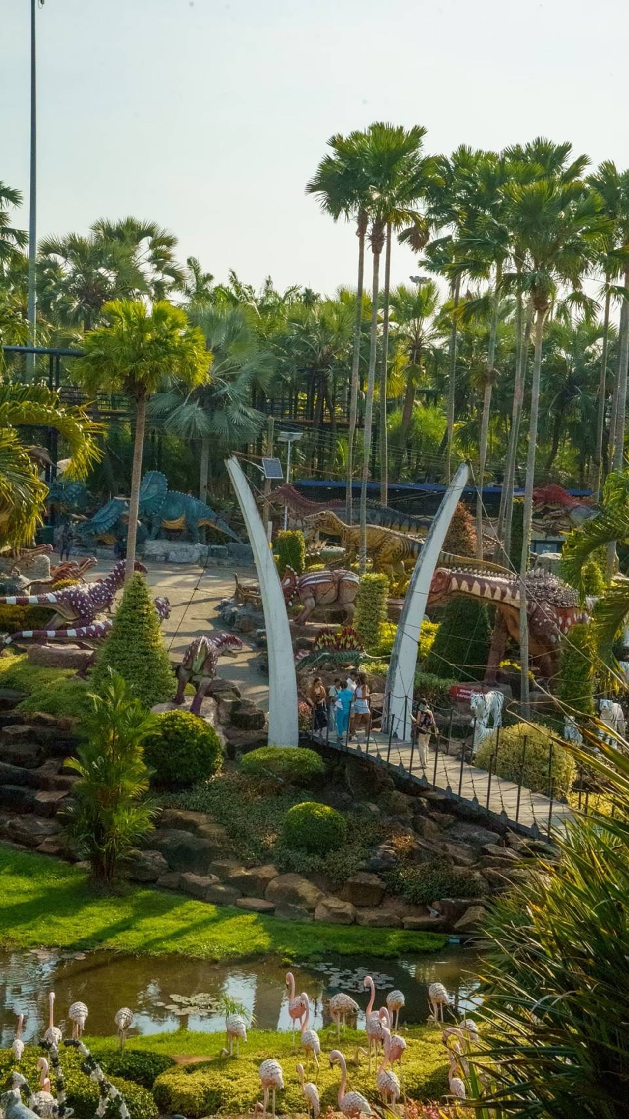 นักท่องเที่ยวจะได้เพลิดเพลินกับการแสดงสุดอลังการ “นงนุชโชว์” และการแสดงช้างแสนรู้ ที่โรงละครสกาลา วันละ 4 รอบ (เช้า 2 รอบ – บ่าย 2 รอบ) พร้อมตื่นตากับสวนสวยกว่า 60 สวน บนพื้นที่กว่า 1,700 ไร่ อาทิ สวนตะบองเพชร 1 และ 2, สวนลอยฟ้า, สวนกล้วยไม้ และเนิร์สเซอรี่ไม้ประดับหลากหลายชนิด