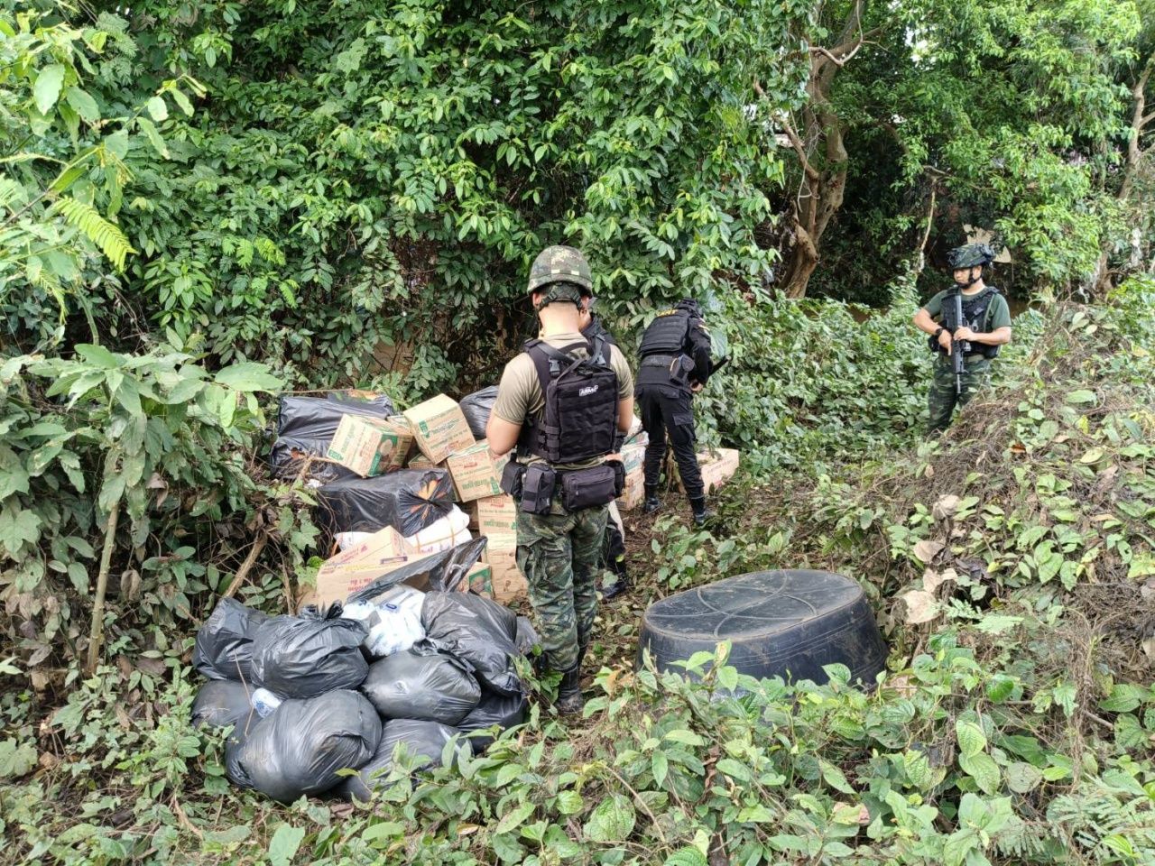 เจ้าหน้าที่เข้าตรวจสอบพื้นที่ดังกล่าว พบสินค้าอุปโภคบริโภคจำนวนมหาศาลถูกลักลอบกองทิ้งไว้ริมคลองกั้นเขตแดน พร้อมรถเข็นที่ใช้ในการลำเลียง คาดว่ากำลังรอเวลาลำเลียงข้ามแดนไปยังกัมพูชาโดยไม่ผ่านพิธีการศุลกากรของกลางปริมาณมาก-ครอบคลุมอาหารจำเป็นต่อการดำรงชีวิต
