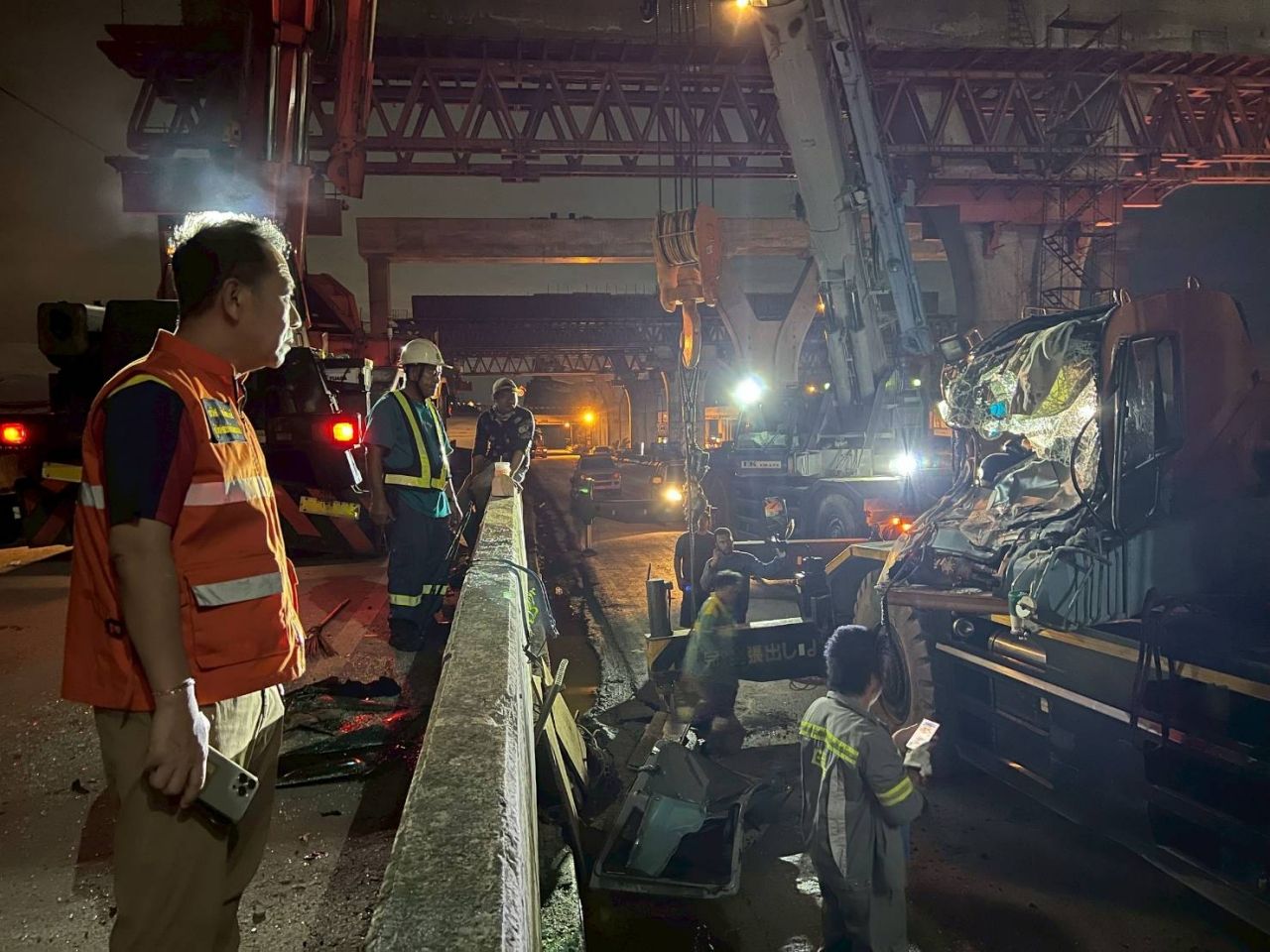 ทั้งนี้จากการที่นายนริศ นิรามัยวงศ์ ผู้ว่าราชการจังหวัดสมุทรสาคร ได้ลงพื้นที่เกิดเหตุและได้พบกับผู้รับผิดชอบทั้งหมด ทั้งผู้รับเหมาก่อสร้าง (ช่วงตอน) และผู้ควบคุมงาน รวมถึงผู้แทนของกรมทางหลวง ก็ได้สั่งกำชับให้ผู้ควบคุมงานของผู้รับเหมา และของกรมทางหลวง เร่งดำเนินการเคลื่อนย้ายรถเครนที่พลิกตะแคงออกจากช่องทางจราจรโดยเร็วที่สุด เพื่อไม่ให้กระทบต่อการสัญจรของประชาชน เพราะรถขาเข้ากรุงเทพฯ ไม่สามารถสัญจรได้ในทุกช่องทาง อีกทั้งยังสั่งการให้ควบคุมการทำงานในพื้นที่ก่อสร้าง ต้องวางแผนปฏิบัติงานอย่างรอบคอบ ถี่ถ้วน และปลอดภัยตลอดเวลา เพื่อป้องกันไม่ให้เกิดเหตุซ้ำได้อีก เร่งรัดให้เจ้าหน้าที่ตำรวจประชาสัมพันธ์แจ้งเตือนผู้ใช้รถ ให้หลีกเลี่ยงการใช้ถนนพระราม 2 บริเวณจุดเกิดเหตุ เนื่องจากคาดว่าการจราจรจะหนาแน่นติดขัดในช่วงเช้าและช่วงสายของวัน